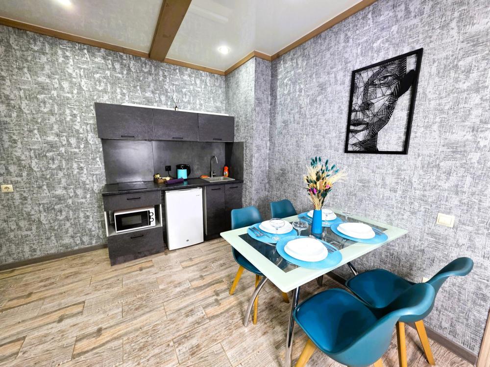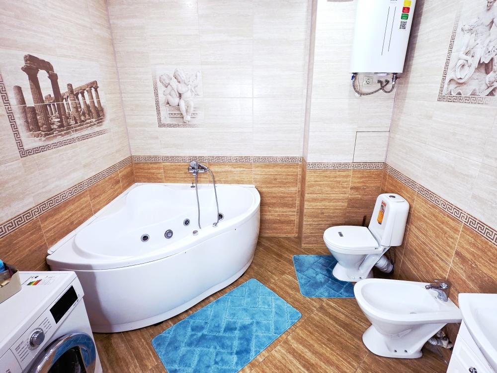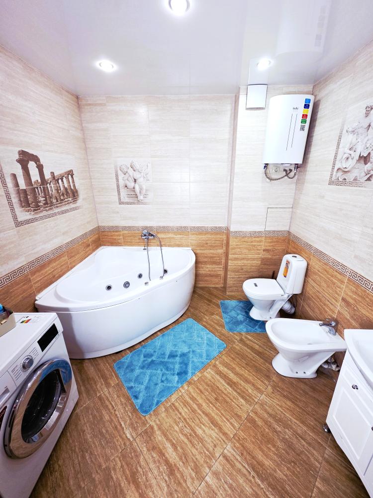 Уютные апартаменты в новом доме — идеальный вариант для краткосрочного проживания. Приглашаем вас остановиться в светлой и просторной квартире студийного типа, расположенной в современном жилом комплексе. Здесь продумана каждая деталь для вашего комфортного отдыха или деловой поездки. Описание Представляем вашему вниманию комфортабельные апартаменты площадью 44 м² в современном жилом комплексе. Квартира выполнена в современном стиле с использованием качественных материалов. Эргономичная планировка и продуманное зонирование создают атмосферу домашнего уюта. Просторная спальня-гостиная, совмещенная с кухонной зоной. Вместимость: до 4 человек (есть двуспальная кровать и раскладывающийся диван). Особенности квартиры •просторная планировка с грамотно организованным пространством. •новый ремонт с использованием современных отделочных материалов. •качественная мебель и бытовая техника премиум-класса. •большое окно с выходом на просторную лоджию и видом на город. •большой, просторный, совмещенный санузел с современной сантехникой. Удобства, интерьер и оснащение •двуспальная кровать с ортопедическим матрасом. •прикроватные тумбы. •вместительный шкаф для хранения вещей. •мягкое освещение. •плотные шторы, обеспечивающие полноценный отдых. •кухонная зона полностью оборудована: холодильник, плита, микроволновая печь, чайник. •набор посуды и столовых приборов на несколько персон. •удобный раскладывающийся диван. •бытовая техника: LED-телевизор с доступом к более 150 каналов., высокоскоростной Wi-Fi, кондиционер. •ванная комната: большая джакузи, биде, душ, фен, стиральная машина, комплект полотенец, туалетные принадлежности, шампунь, гель для душа, мыло, маска для лица, ватные палочки и диски, дезодоранты, утюг, гладильная доска. Дополнительные преимущества •круглосуточное видеонаблюдение на всех этажах, в лифте, а также по периметру дома, где расположена квартира. •большой паркинг для вашего автомобиля около дома. •большая современная детская площадка во дворе. •развитая инфраструктура, в пешей доступности супермаркеты, гипермаркеты, различные кафе, рестораны, фитнес-клубы, аптеки, банки, винный клуб. •развитой район с удобной транспортной развязкой. •1–2 минуты пешком до ближайшей остановки общественного транспорта. •3-5 минут езды до центра города. Правила проживания •заезд: с 14:00. •выезд: до 12:00. •курение: запрещено в помещениях (есть специально отведённые места на территории). •животные: по предварительной договорённости. •проведение мероприятий: не допускается. •тихие часы: с 22:00 до 8:00. •залог: 3 000 рублей (возвращается при соблюдении правил проживания). •уборка: включена в стоимость (проводится перед каждым заездом). Квартира идеально подойдет как для семейного отдыха, так и для деловых поездок. Создана для тех, кто ценит комфорт, качество и уют. Мы заботимся о вашем комфорте и готовы учесть любые пожелания. Будем рады видеть вас в числе наших гостей!