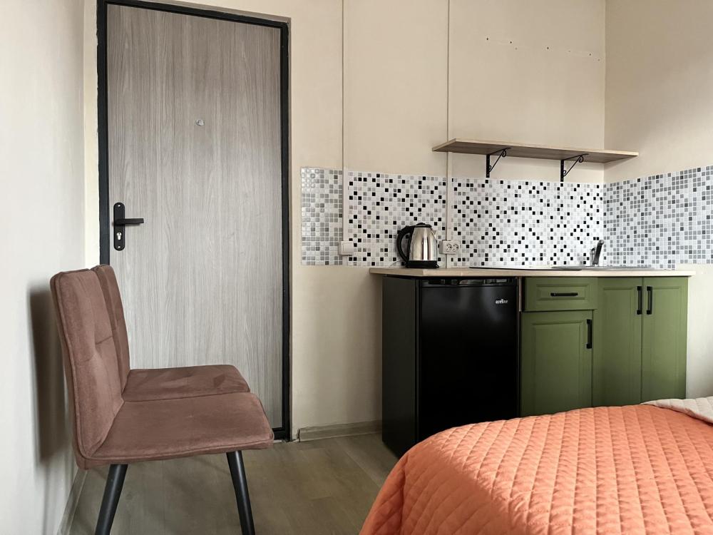 Предлагаем Вашему вниманию компактную уютную студию в Абакане, которая станет для Вас прекрасным местом отдыха во время вашего отпуска или деловой поездки. Студия находится всего в 10 минутах езды от аэропорта. Ближайшая остановка общественного транспорта находится в 3-х минутах ходьбы от дома, что обеспечивает удобную транспортную развязку по всему городу . Вся необходимая инфраструктура по-близости: супермаркеты, магазины с хозяйственными и продовольственными товарами, салоны красоты, медицинские центры, закусочные, рестораны, кафе, ПВЗ и многое другое. В пешей доступности располагаются два невероятно красивых парка. Черногорский парк с локальной достопримечательностью "Вдохновение" и живописным прудом с уточками и рыбками, а также с множеством огоньков и фонарей, создающих праздничное настроение, смотровыми площадками и тропами, где Вы можете совершать романтические или семейные прогулки по вечерам. По-соседству с ним - Парк Победы, которые также прекрасно подойдет для прогулок или утренних оздоровительных пробежек. Рядом с домом есть бесплатная большая парковка для тех, кто предпочитает путешествовать на автомобиле. В квартире вас всегда ждёт: - бесплатный Wi-Fi; - телевизор с онлайн кинотеатром; - необходимая бытовая техника - холодильник, электрическая плита, духовой шкаф, стиральная машина, чайник; - необходимая посуда и кухонная утварь ; - большая двуспальная кровать с ортопедическим матрасом - Ваша спинка скажет Вам спасибо; - необходимые комплекты чистого постельного белья и свежих пушистых полотенец - для Вашего уютного сна и комфорта; - необходимые предметы гигиены. Правила проживания: - стандартное время заезда с 14:00, выезда до 12:00; - страховой залог в размере 2000 возвращается в день выезда после уборки горничной, при условии сохранности состояния квартиры и ее содержимого, а также при отсутствии сильных загрязнений; - в квартире курить запрещено ; - проведение шумных мероприятий запрещено; - проживание с животными оговаривается индивидуально, может взиматься дополнительная оплата, размер оплаты также оговаривается отдельно; - отчетные документы предоставляются по запросу. При длительном бронировании действует система скидок. Возможно краткосрочное заселение на 30-90 дней. Забронируйте свою уютную студию уже сегодня и откройте для себя все прелести Абакана!