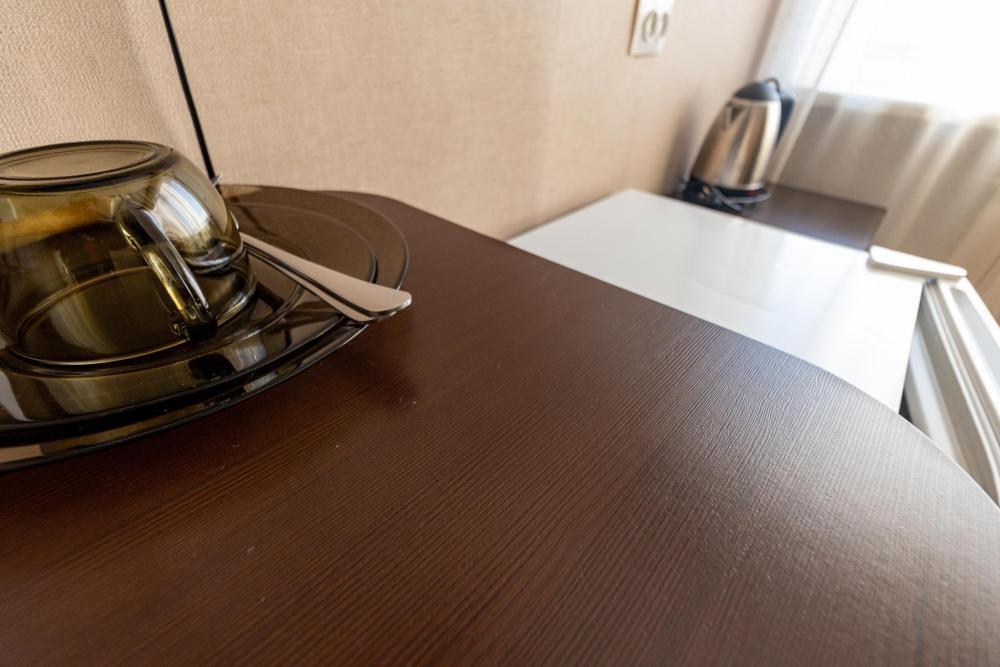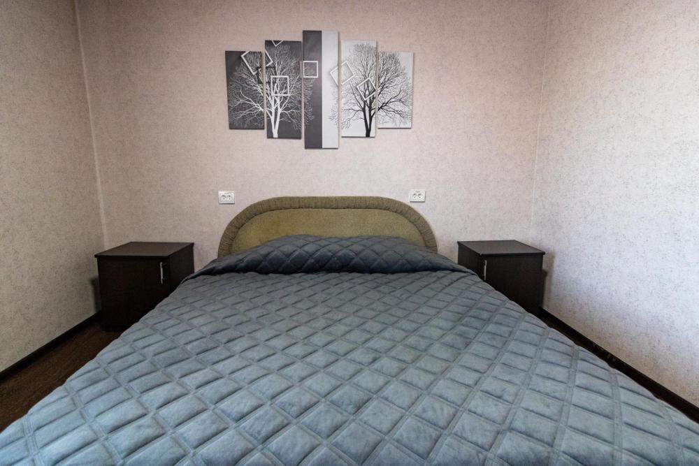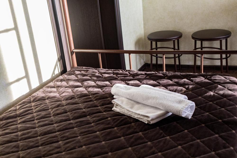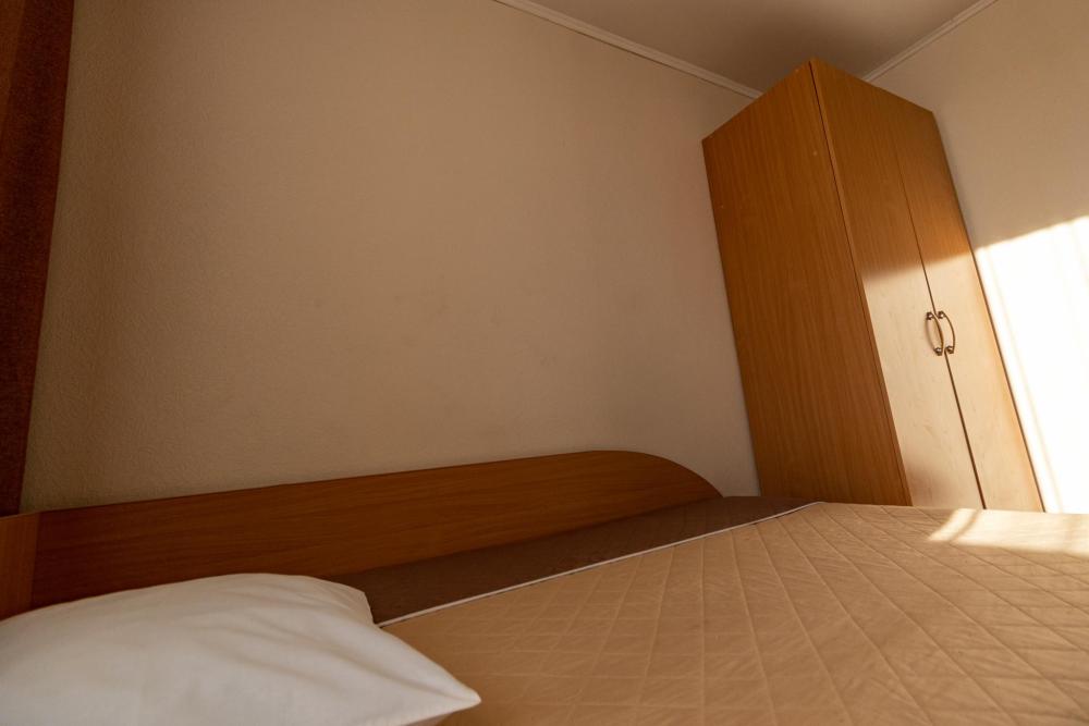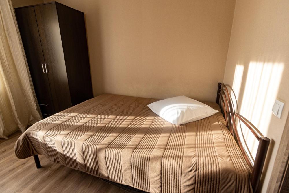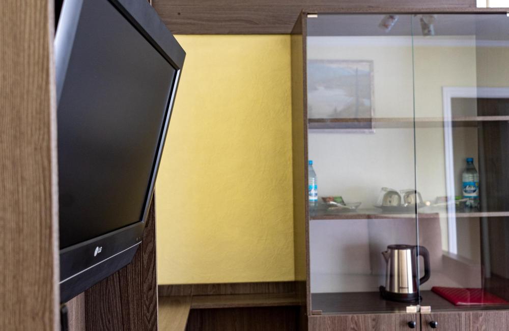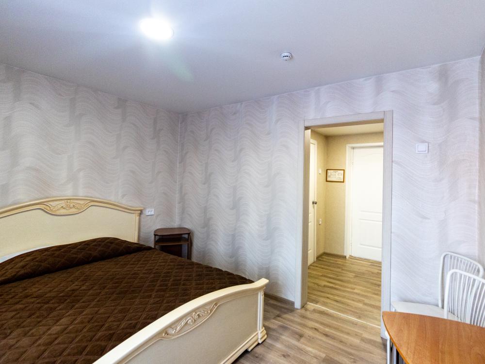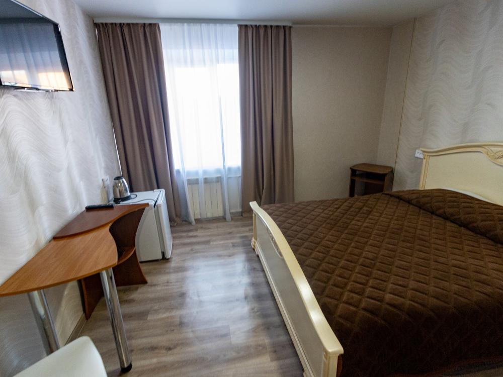 Одноместный однокомнатный номер с двуспальной кроватью. Номер оборудован собственной ванной комнатой. В номере телевизор, холодильник, электрический чайник. В ванной полотенца и туалетные принадлежности.