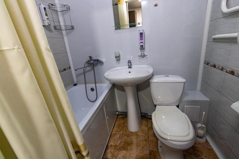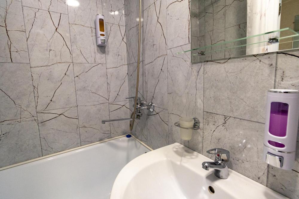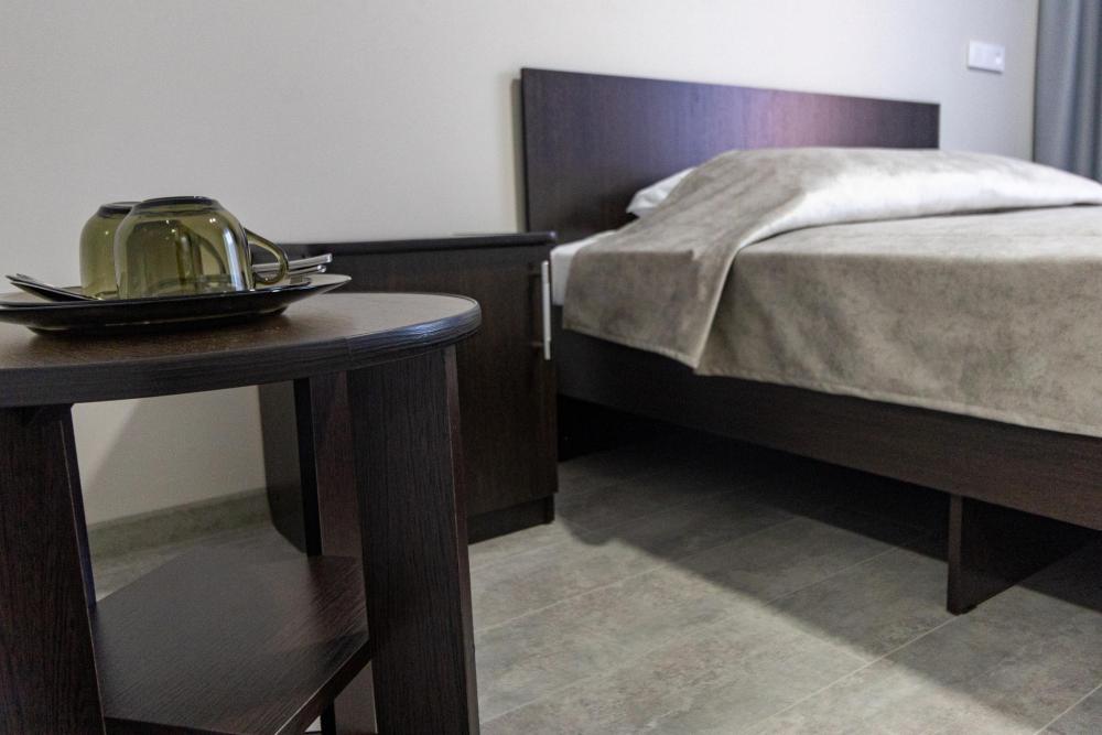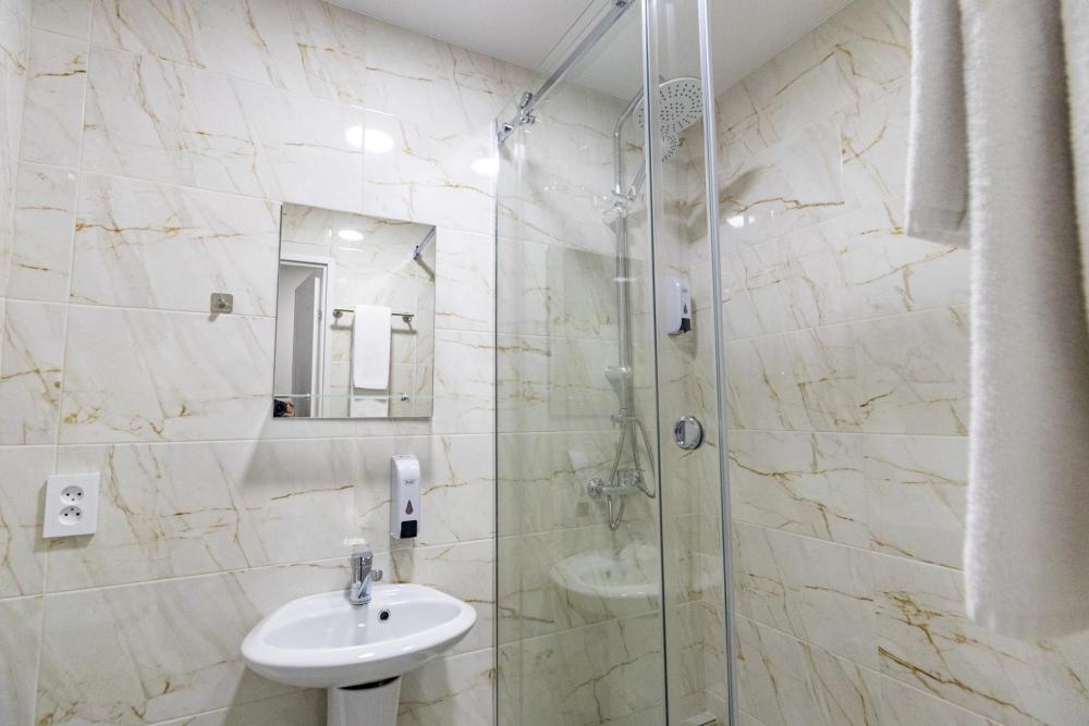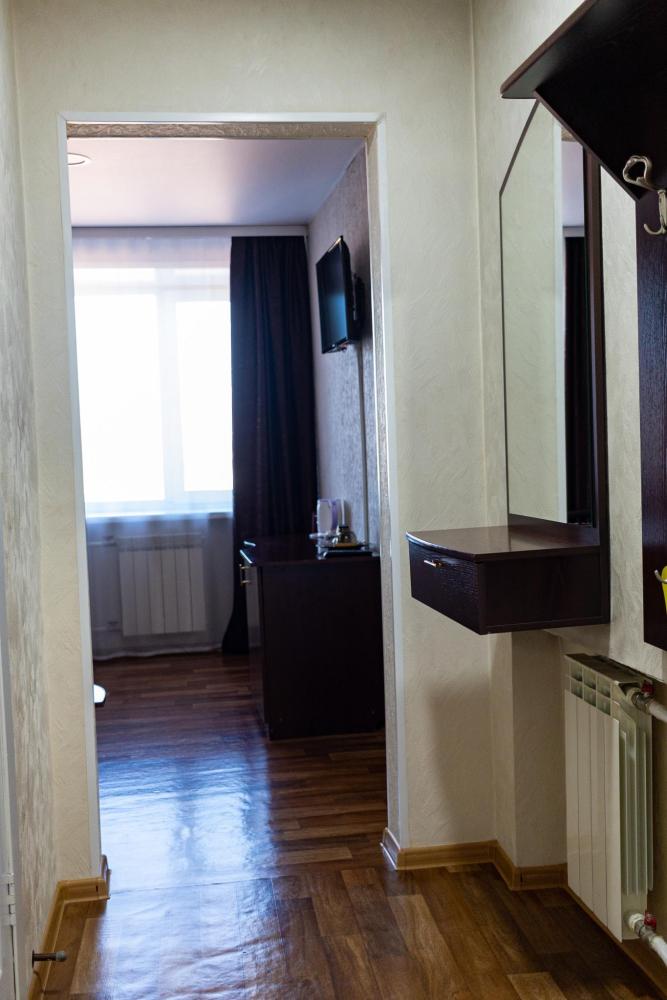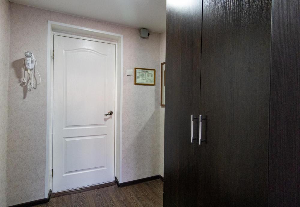 Одноместный однокомнатный номер с односпальной или двуспальной кроватью. Номер оборудован небольшой ванной комнатой. В номере холодильник, телевизор, электрический чайник. В ванной полотенца и туалетные принадлежности.