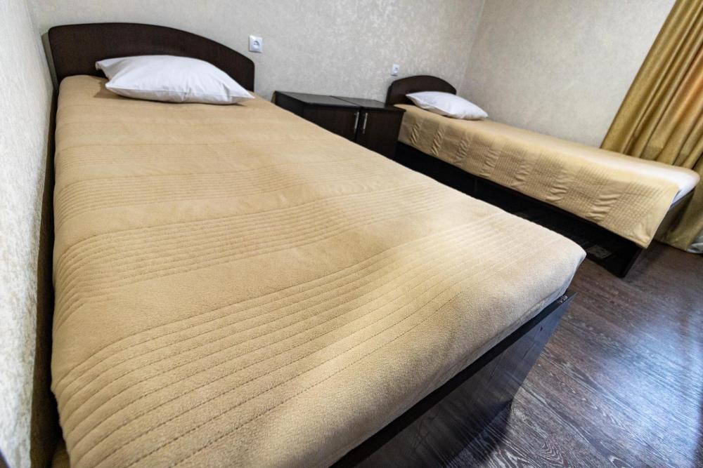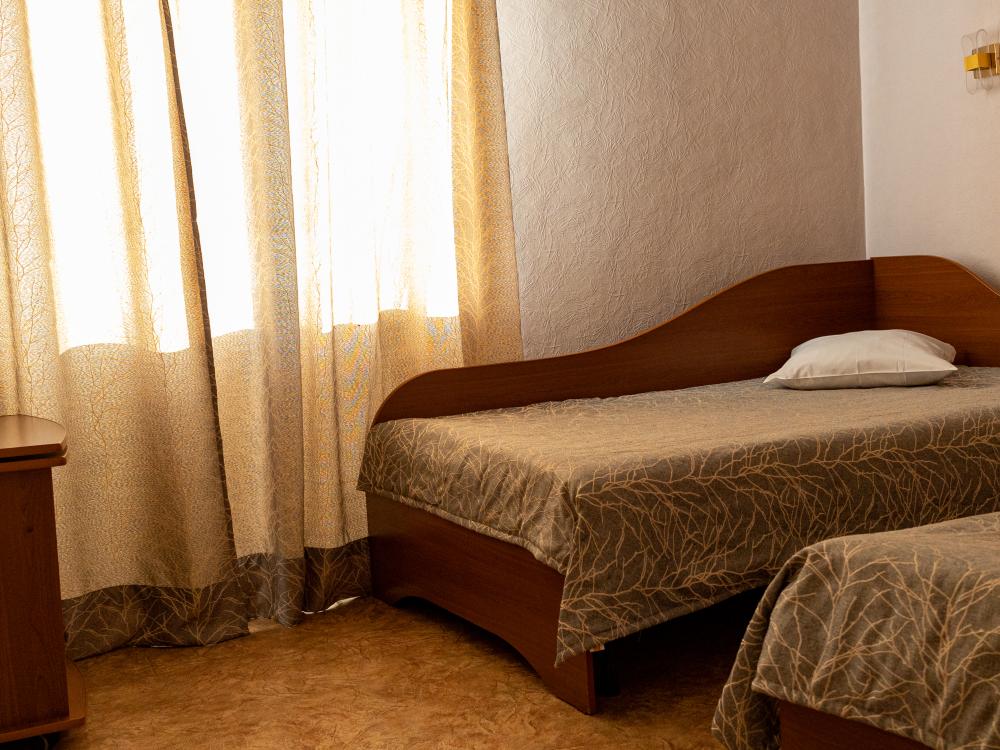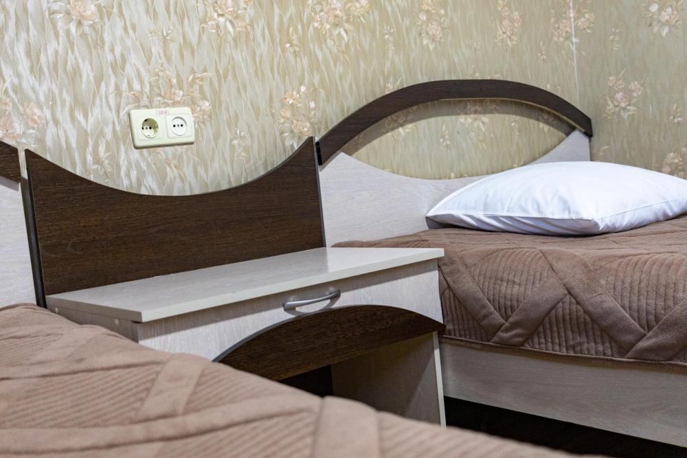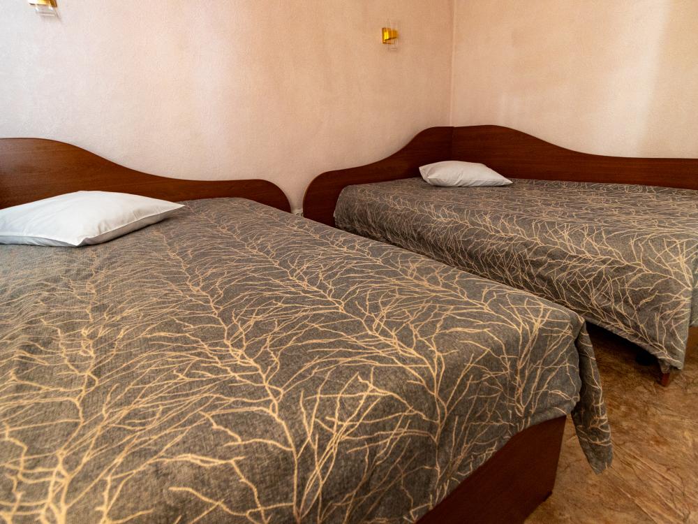 Двухместный однокомнатный номер с двумя односпальными кроватями. Номер оборудован собственной ванной комнатой. В номере телевизор, холодильник и электрический чайник. В ванной полотенца и туалетные принадлежности.