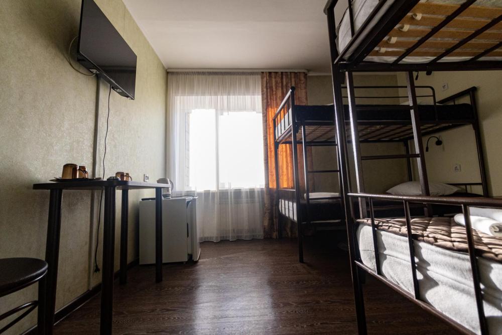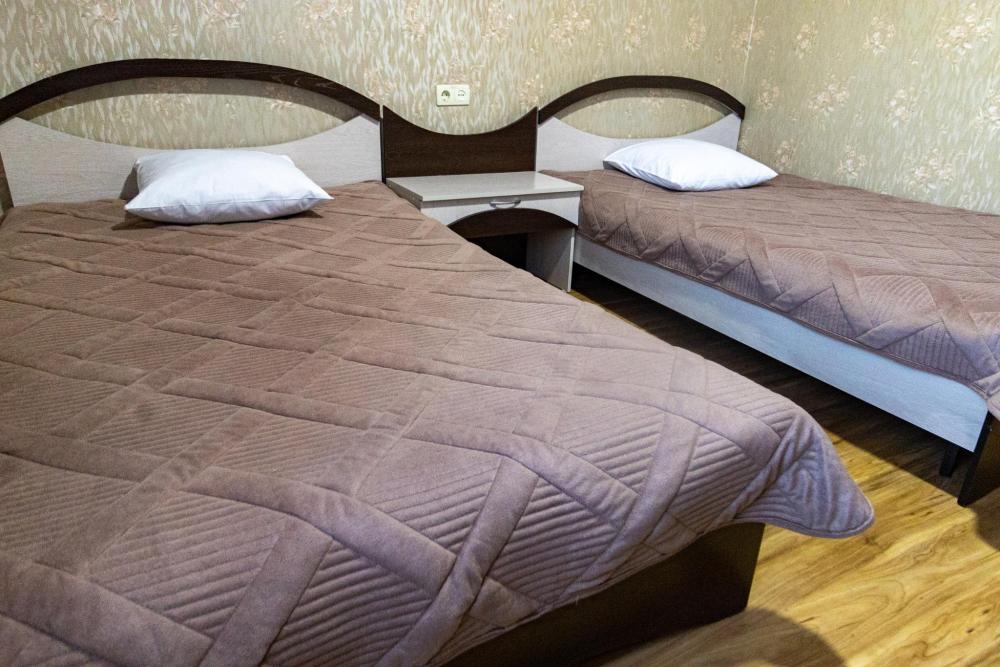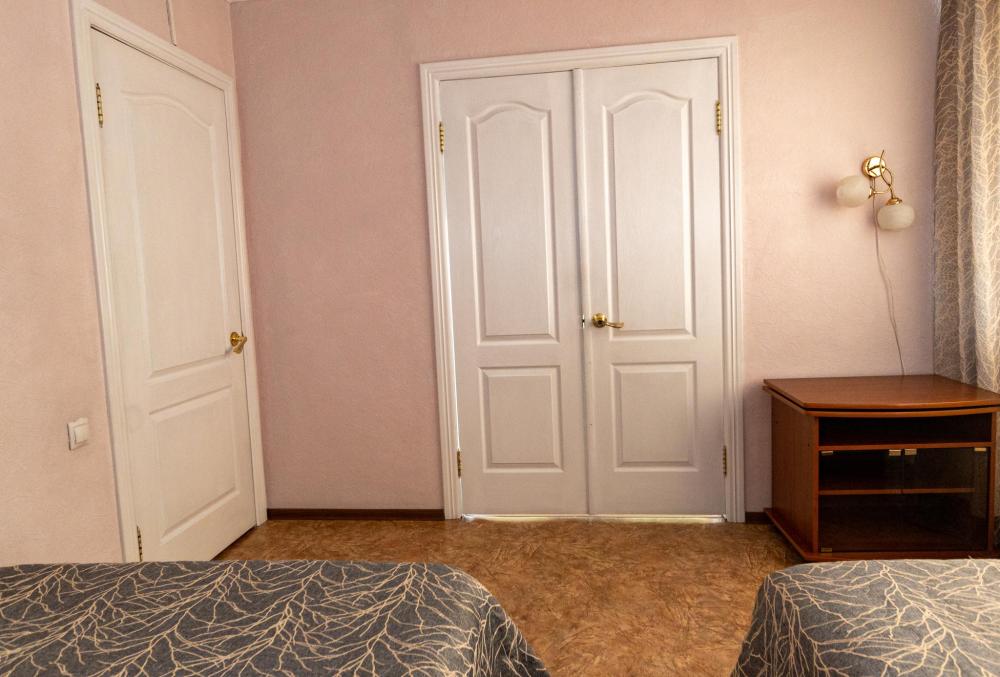 Двухместный однокомнатный номер с двумя полутораспальными кроватями. Номер оборудован собственной ванной комнатой. В номере телевизор, холодильник и электрический чайник. В ванной полотенца и туалетные принадлежности.