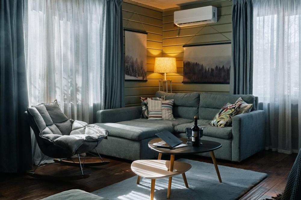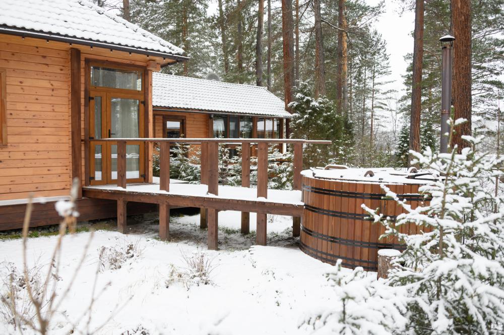 Уютный двухэтажный дом из кругляка в окружении живописной природы парк-отеля и видом на лес. Дом располагает тремя просторными спальнями, тремя санузлами и двумя гостиными. Особую привлекательность дому придает наличие собственной электрической сауны и подогреваемой купели на дровах — идеально для релаксации после насыщенного дня. Территория вокруг дома благоустроена и включает в себя зону для отдыха на свежем воздухе и площадкой для барбекю. Здесь вы сможете насладиться тишиной и красотой окружающей природы, провести время с большой семьей или компанией. Этот дом — идеальное место для тех, кто ценит комфорт, уединение и природную гармонию.