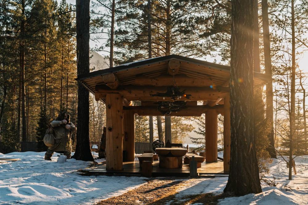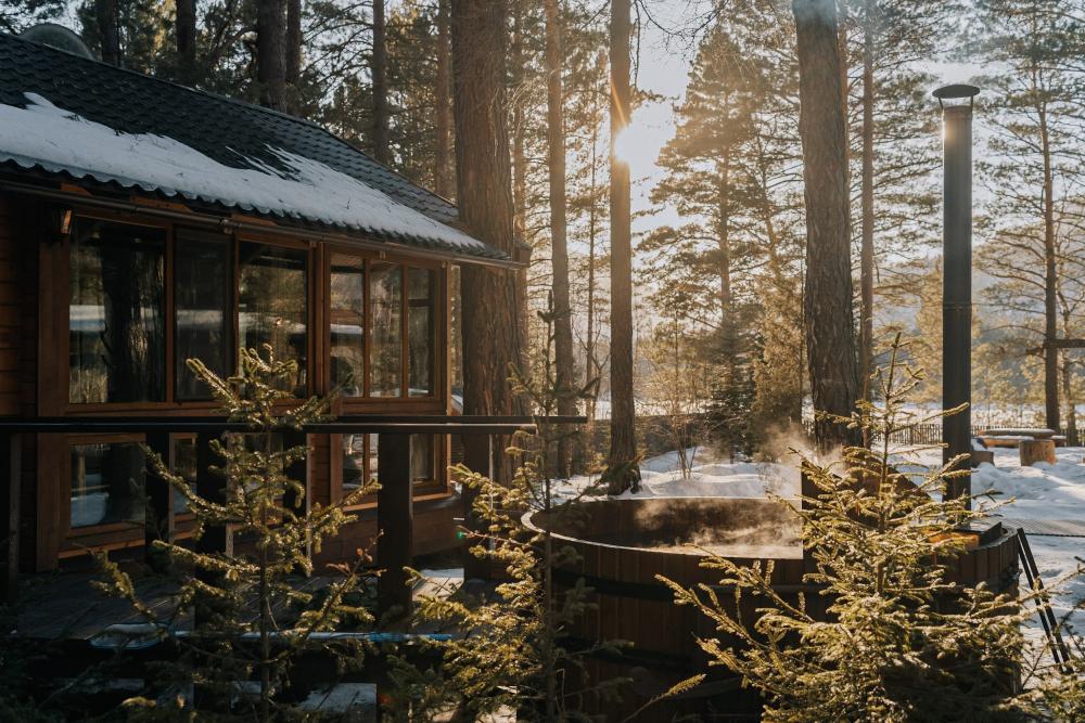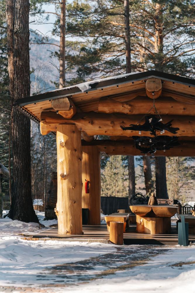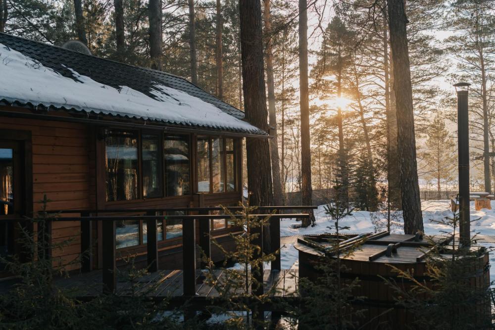 Отдельно стоящий двухэтажный дом из кругляка с видом на горы, прилегающую территорию и на реку Абакан. 1 этаж. Спальня-гостиная : двуспальная кровать, угловой двуспальный диван, зеркало, телевизор Smart TV, Wi-Fi, журнальный столик, 2 кресла, увлажнитель воздуха, фонарик, шкаф вещевой, гладильная станция, телефон для внутренней связи, сейф. Кухня с панорамным видом, кухонный гарнитур, обеденный стол, лавочка и стулья на 4 персоны, индукционная плита, холодильник с морозильной камерой, микроволновая печь, питьевая вода, чайная станция, столовая посуда, столовые приборы, набор бокалов и стаканов, ножи для готовки, сковорода, кастрюля маленькая, кастрюля большая, штопор, разделочная доска, половник, лопатка, кухонное полотенце, принадлежности для мытья посуды . Санузел с умным унитазом с функцией биде, подогревом сиденья и подсветкой, раковина, зеркало с подсветкой, фен, теплый пол, мыло, лосьон для тела. В прихожей 4 фирменных зонта, фонарик, лавочка для обуви, 4 пледа, теплый пол. 2 этаж . Спальня : высокий двуспальный матрас, комод для одежды, санузел с душевой кабиной, умный унитаз с функцией биде, подогревом сиденья и подсветкой, раковина, зеркало с подсветкой, фен, теплый пол, набор полотенец, халат и тапочки (для каждого гостя), мыло, гель для душа, шампунь для волос, кондиционер для волос, лосьон для тела. На террасе 4 стула, стол, 2 шезлонга, качель. Персональная мангальная зона с принадлежностями.