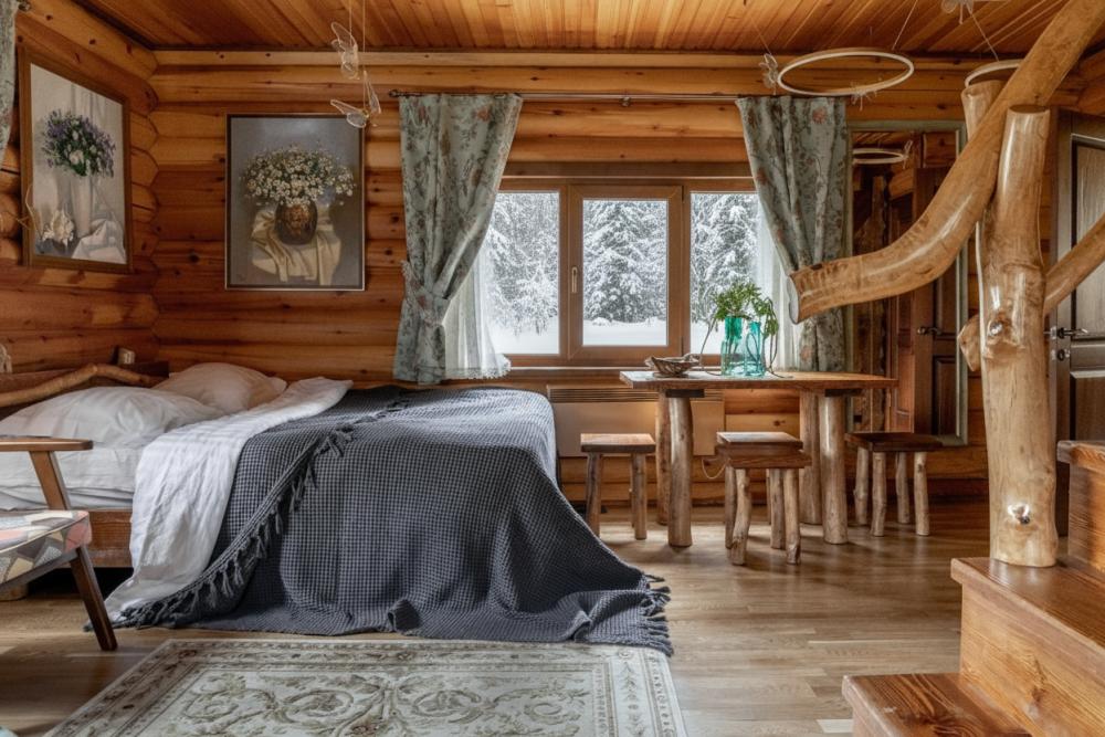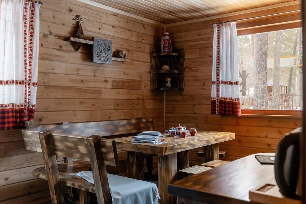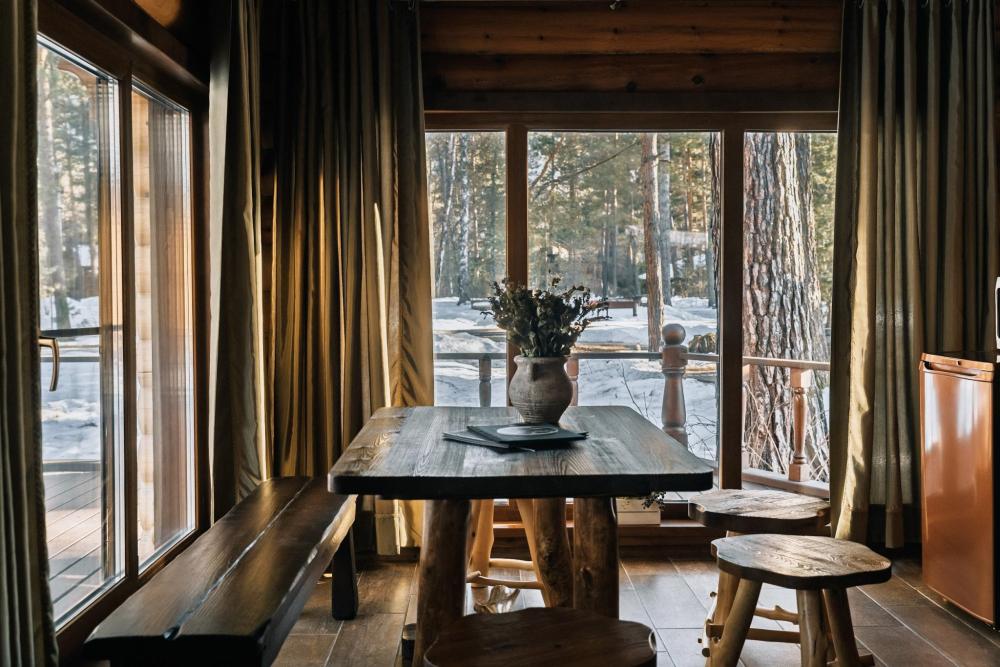 Отдельно стоящий дом из кругляка с видом на живописную территорию отеля. 2 раздельные комнаты. Панорамный вид в гостиной. Удобное зонирование гостиной и кухонной зон, современный санузел. На территории дома: терраса с качелью, индивидуальная мангальная зона с беседкой. В доме есть все необходимое для комфортного отдыха с семьей или друзьями.