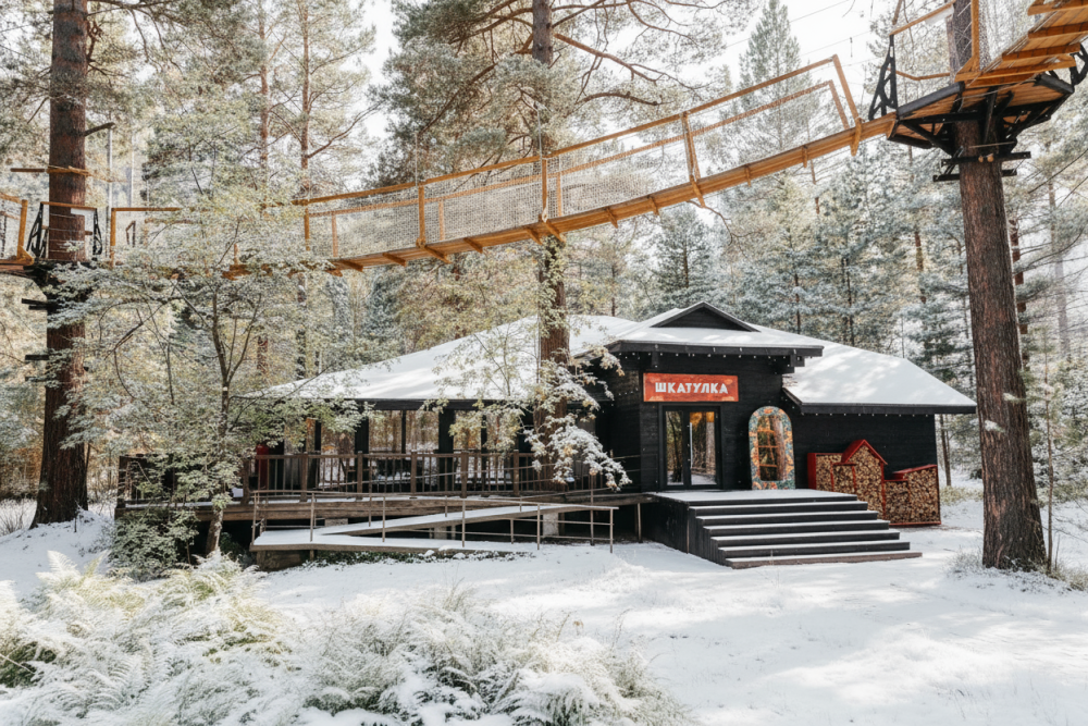 Отдельно стоящий дом из бруса с видом на сосновый лес и живописную территорию парк-отеля. Удобное зонирование гостиной и спальной зон, современный санузел. На территории дома: терраса с шезлонгами, индивидуальная мангальная зона с костровищем, большая качель-скамья. В доме есть все необходимое для комфортного отдыха влюбленной пары или семьи с детьми.