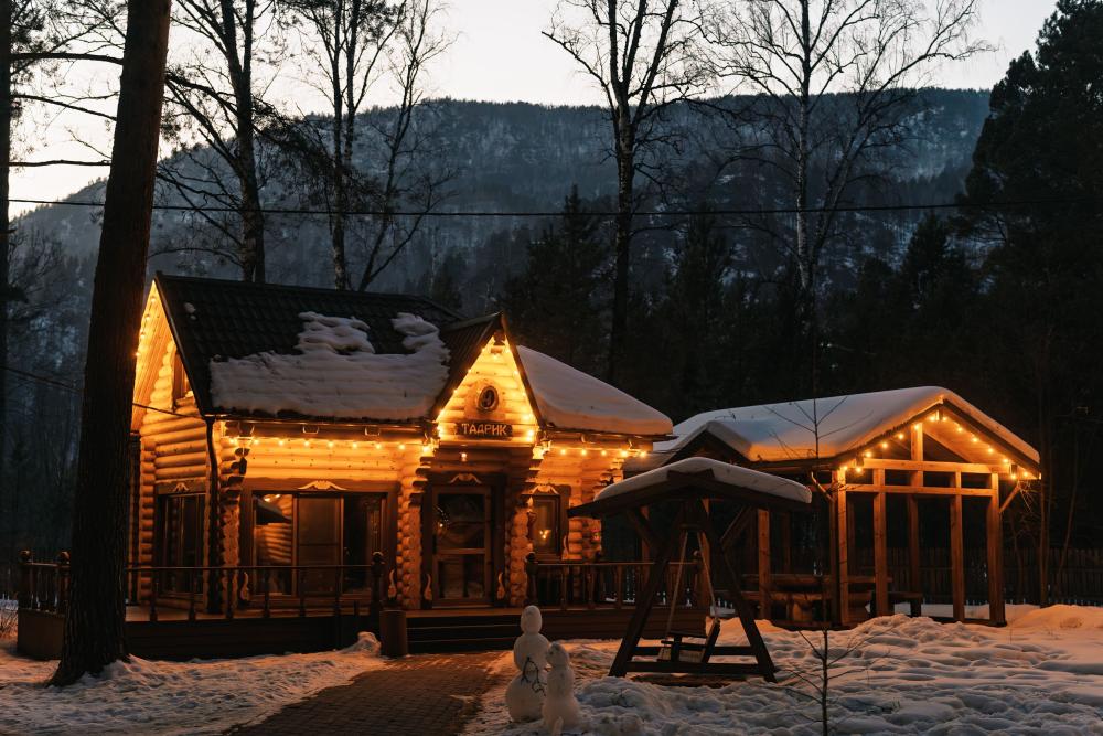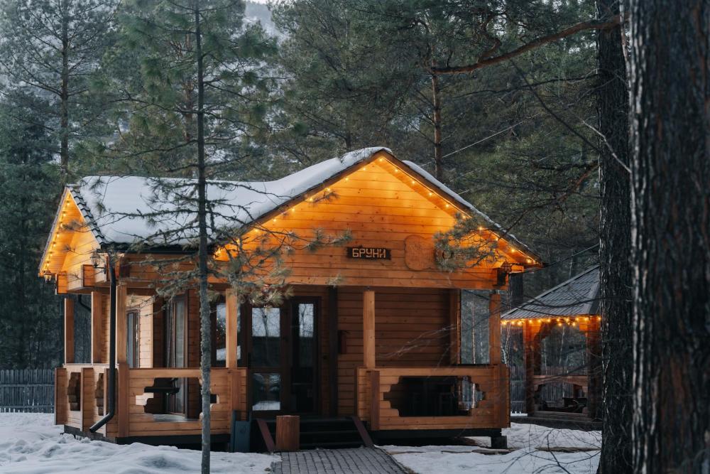 Отдельно стоящий двухэтажный дом из кругляка, с видом на горы и сосновый лес 1 этаж : Гостиная с обеденной зоной, угловой двуспальный диван, гардеробная, зеркало, телевизор Smart TV, Wi-Fi, обеденный стол, лавочки, увлажнитель воздуха, фонарик, гладильная станция, 2 теплых пледа, телефон для внутренней связи, сейф. Кухонная зона : кухонный гарнитур, холодильник с морозильной камерой, стол на 2 персоны, 2 стула, микроволновая печь, питьевая вода, чайная станция, столовая посуда, столовые приборы, набор бокалов и стаканов, ножи для готовки, штопор, разделочная доска, половник, лопатка, кухонное полотенце, принадлежности для мытья посуды. Санузел с душевой кабиной, умный унитаз с функцией биде, подогревом сиденья и подсветкой, раковина, зеркало, фен, теплый пол, набор полотенец, халат и тапочки (для каждого гостя), мыло, гель для душа, шампунь для волос, кондиционер для волос, лосьон для тела. В прихожей 2 фирменных зонта, теплый пол. 2 этаж. Спальня 1 -2 односпальные кровати, 2 прикроватные тумбы; Спальня 2 (изолированная) -2 односпальные кровати, 2 прикроватные тумбы. Санузел : умный унитаз с функцией биде и подогревом сиденья и подсветкой, раковина, зеркало с подсветкой, полотенце для рук, фен, мыло, лосьон для тела. На террасе 4 стула, стол, 2 шезлонга, качель. Персональная мангальная зона с принадлежностями.