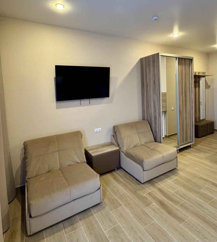 В номере есть все необходимое: Удобны кровати, диван, кондиционер, ванная комната, wi-fi.