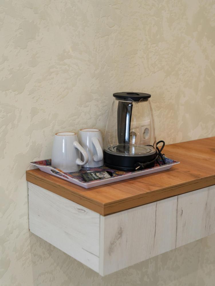 Номер «Комфорт» (23 м²) Просторный и светлый номер для тех, кто хочет больше места и удобств. Две односпальные кровати и дополнительная площадь создают ощущение свободы, а наличие чайной станции добавляет домашний уют. В номере есть: Две односпальные кровати с ортопедическими матрасами , Собственный санузел с душевой кабиной , Чайник с набором для чая , Набор полотенец и банные тапочки , Туалетные принадлежности (шампунь, гель для душа) ,Фен , Высокоскоростной Wi-Fi.