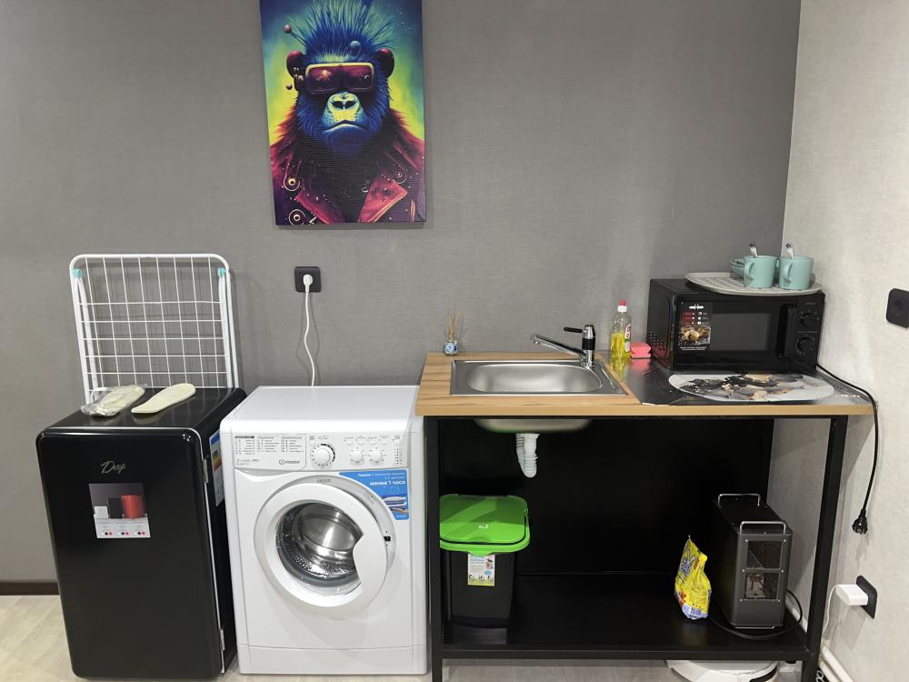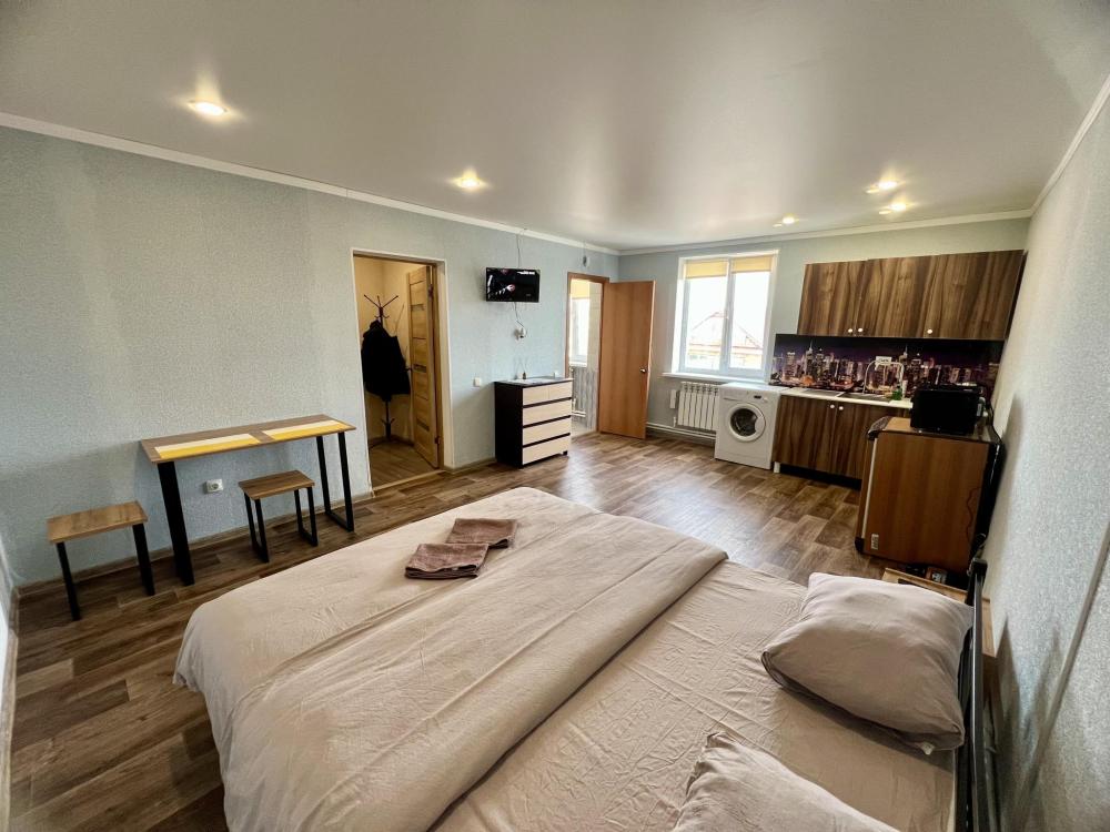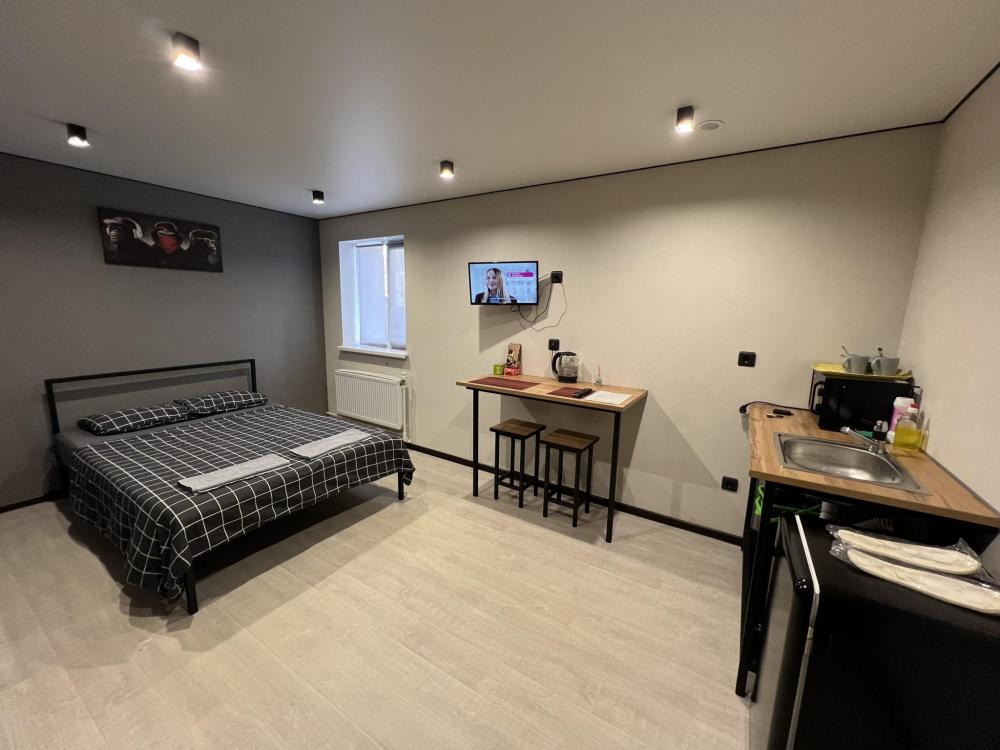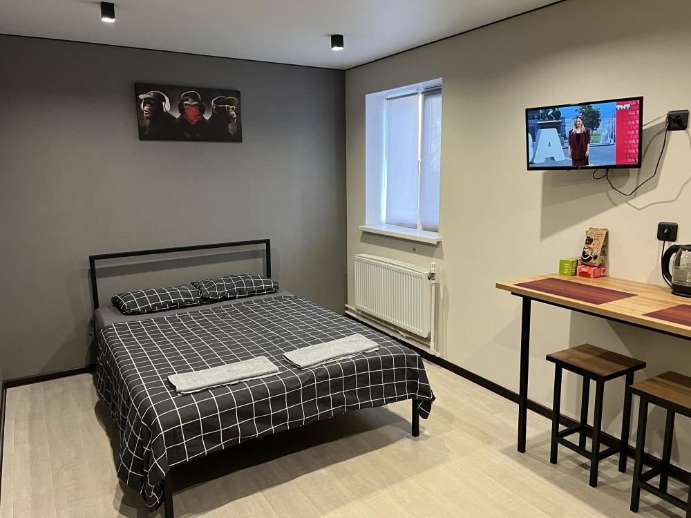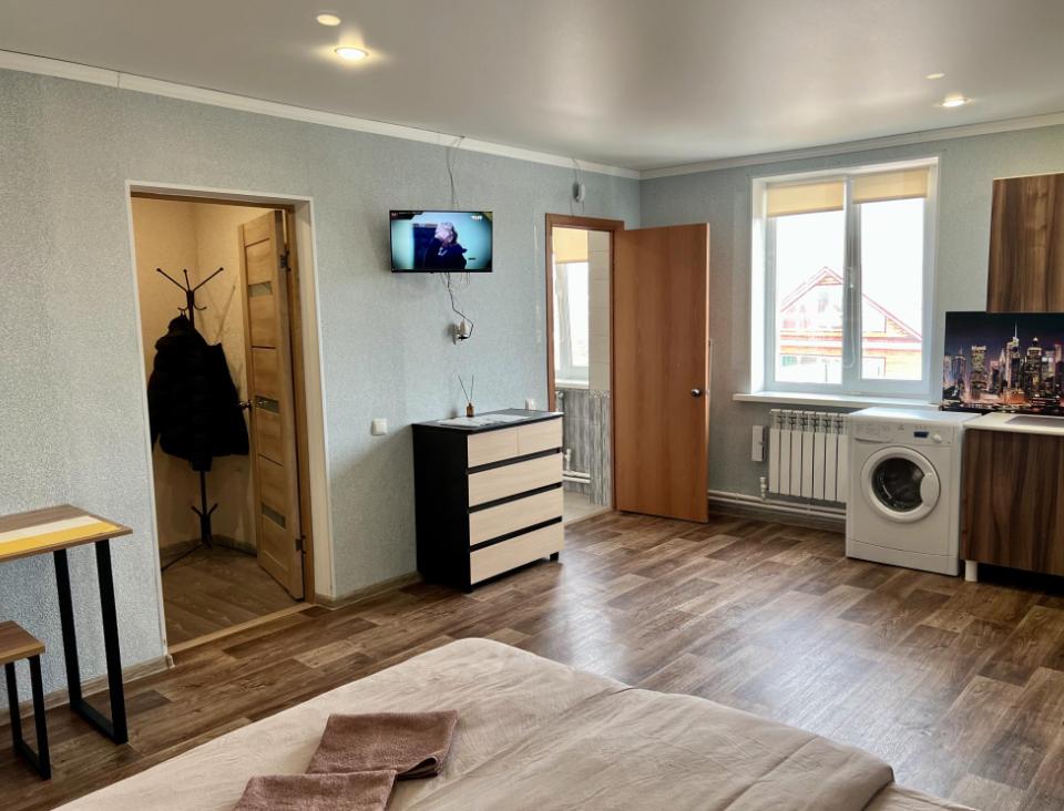 Уютные апартаменты студия для 2 гостей. В квартире: двуспальная кровать, холодильник, микроволновая печь, стиральная машина, ЖК-телевизор, постельное белье, посуда, одноразовые тапочки и зубные щётки. Также предоставлены чай, кофе, сахар и питьевая вода для удобства гостей. Всегда чистое постельное белье, влажная уборка перед каждым заселением.
