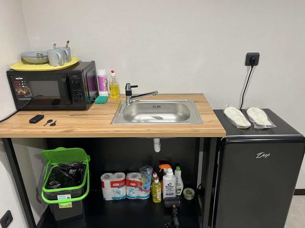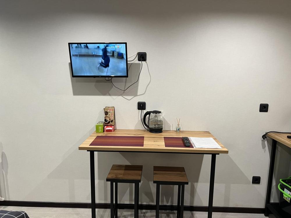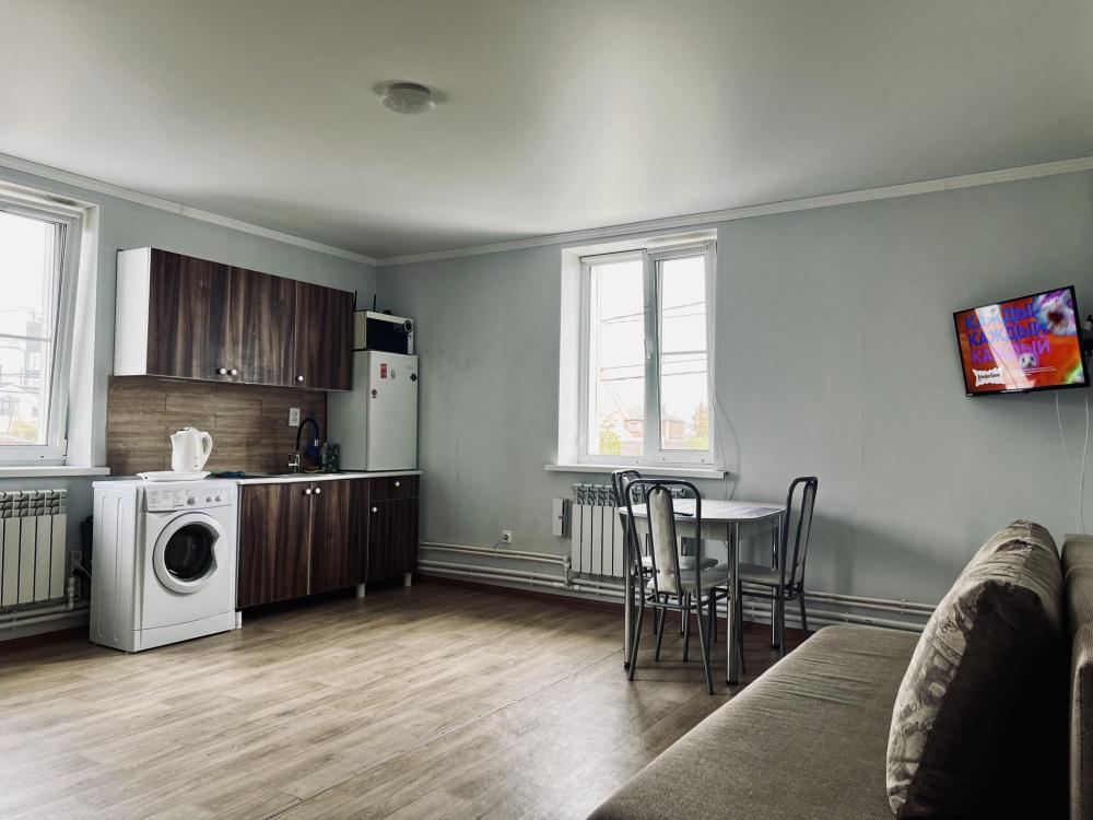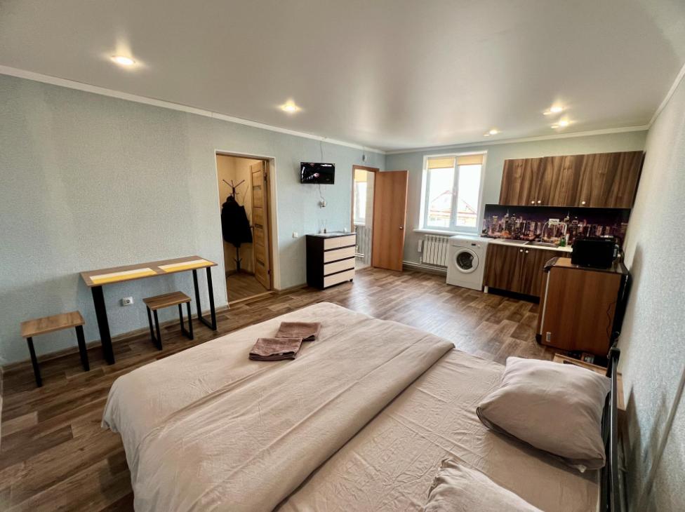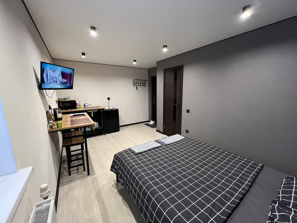 Уютные апартаменты студия для 2 гостей. В квартире: двуспальная кровать, холодильник, микроволновая печь, стиральная машина, ЖК-телевизор, постельное белье, посуда, одноразовые тапочки и зубные щётки. Также предоставлены чай, кофе, сахар и питьевая вода для удобства гостей. Всегда чистое постельное белье, влажная уборка перед каждым заселением.