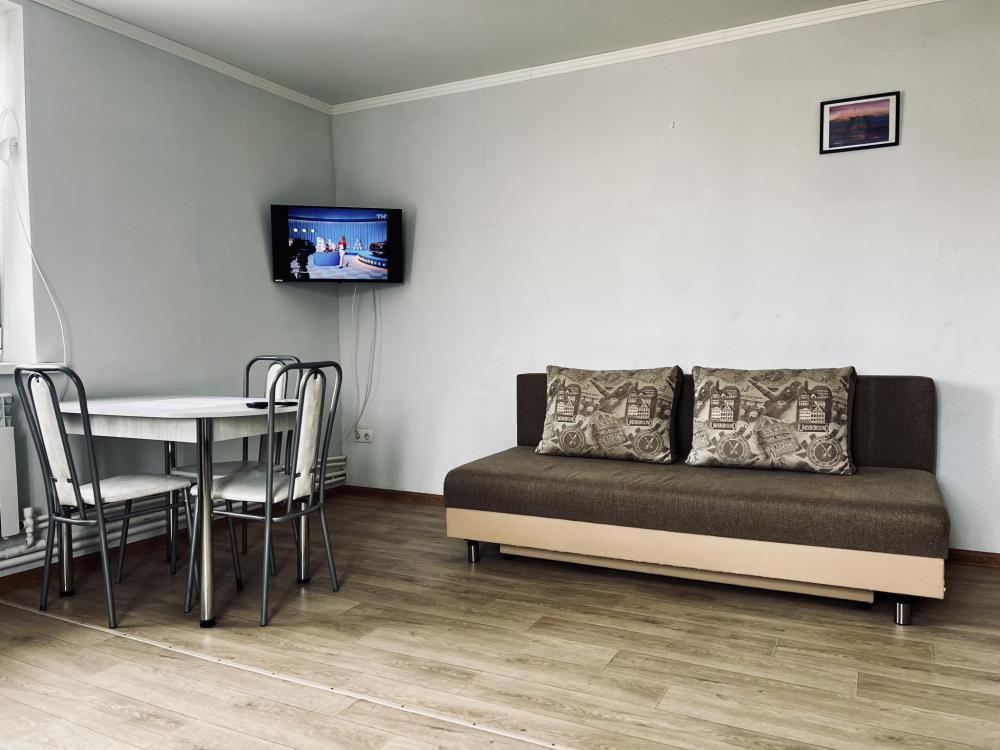 Уютные двухкомнатные апартаменты, оборудованные всем необходимым для комфортного проживания. В квартире: три двуспальных дивана, холодильник, микроволновая печь, стиральная машина, ЖК-телевизор, постельное белье, посуда, одноразовые тапочки и зубные щётки. Также предоставлены чай, кофе, сахар и питьевая вода для удобства гостей. Всегда чистое постельное белье, влажная уборка перед каждым заселением.