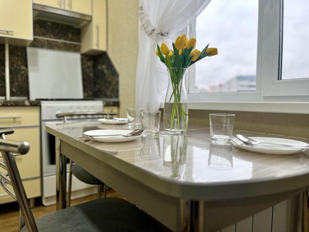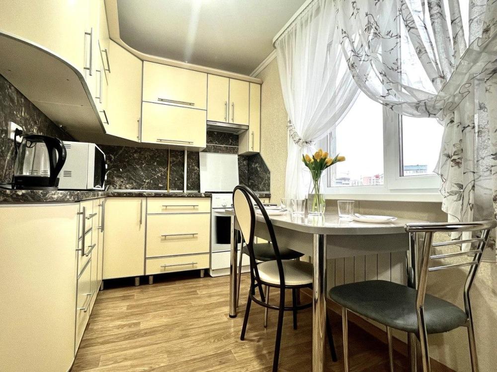 В квартире имеется все необходимое для комфортного проживания как на одни сутки, так и на более длительный срок. Двухспальная кровать с ортопедическим матрасом, диван не раскладной. Wi-Fi роутер, Smart TV-плазма, качественное белье, махровые полотенца, посуда, комфортная ванная комната, электрический чайник, бокалы фужеры, микроволновая печь.