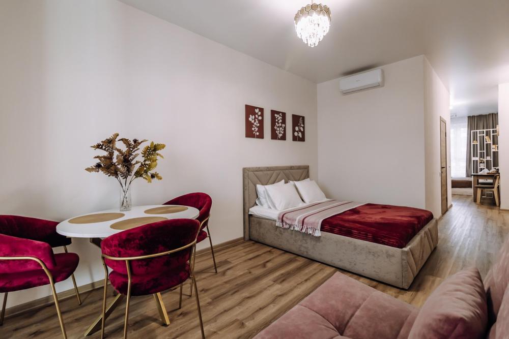 Уютная студия для 2 гостей. Квартира оснащена одной двуспальной кроватью К удобству гостей: ТВ, WI FI, Фен, Холодильник, Стиральная машинка, Микроволновка, Лоджия, Гардеробная. Удобная локация: апартаменты расположены в центре города. Рядом расположена вся необходимая...