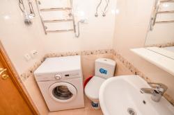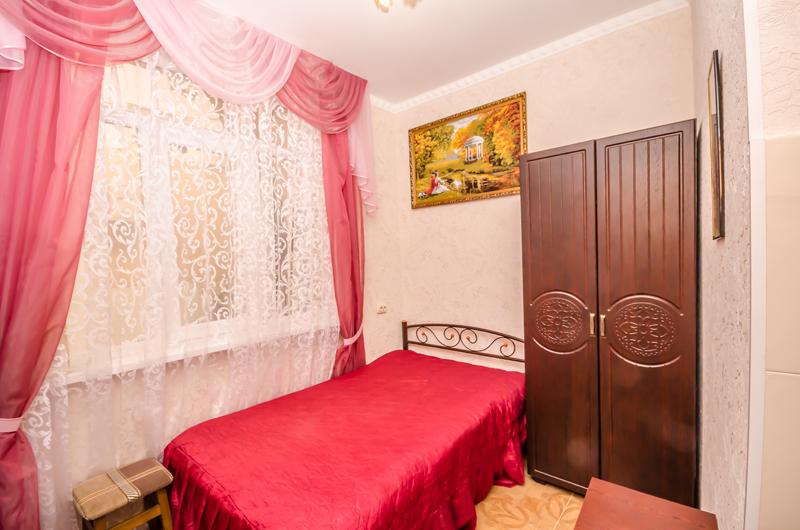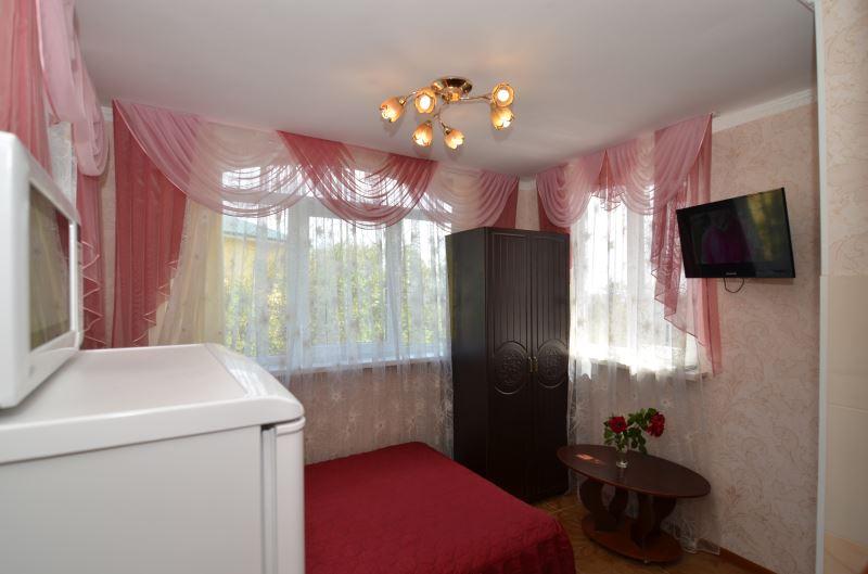 Комната на втором этаже с балконом. Кондиционер, 2 телевизора, Wi-Fi, стиральная машина. Шикарная белая итальянская мебель. Двуспальная кровать, 1,5-спальный раскладной диван, также в некоторых номерах 1.5-спальный диван и двухъярусная кровать, постельные принадлежности, 2 тумбочки, трюмо с зеркалом, шкаф, 3 табурета, стол, ТВ-тумба, шкаф-купе в прихожей. Вторая маленькая комната (односпальная кровать, тумбочка, ТВ) совмещена с кухней. На кухне электроплита с духовкой, вытяжка, шкафчики, рабочая поверхность, раковина. Холодильник, электрочайник, микроволновая печь. Кастрюли, сковородки, стаканы, кружки, тарелки, ложки, вилки, нож, досточка, открывашка, губка и тряпочка для посуды/стола, моющее средство для посуды. Туалет с раковиной, ванная комната с душевой кабиной, гарнитур с раковиной и зеркалом, полотенцесушитель, корзина для белья, бойлер, фен, утюг, банные и лицевые полотенца, туалетная бумага, мыло.