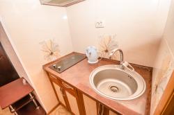 Комната находится на втором этаже. Кондиционер, телевизор, Wi-Fi, стиральная машина. Двуспальная кровать, шкаф, настенная вешалка, табурет, журнальный столик, постельные принадлежности. Мини-кухня с электроплитой, вытяжкой, шкафчиками, рабочей поверхностью, раковиной. Холодильник, электрочайник, микроволновая печь. Кастрюли, сковородки, стаканы, кружки, тарелки, ложки, вилки, нож, досточка, открывашка, губка и тряпочка для посуды/стола, моющее средство для посуды. Душевая, туалет, ванный гарнитур с раковиной и зеркалом, бойлер, фен, утюг, банные и лицевые полотенца, туалетная бумага, мыло.