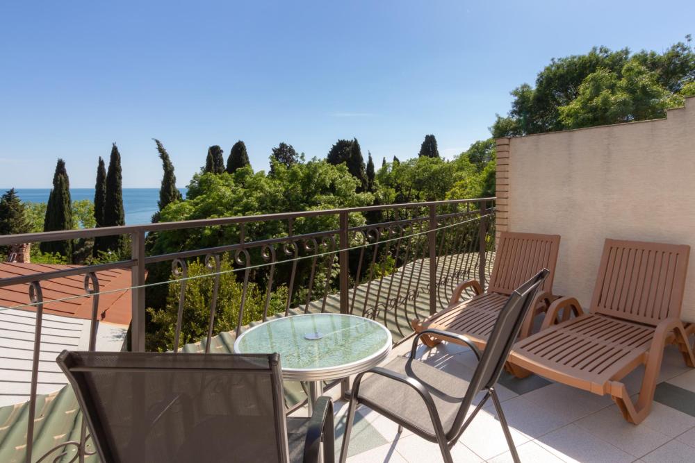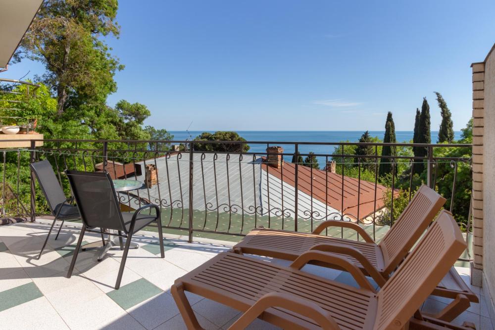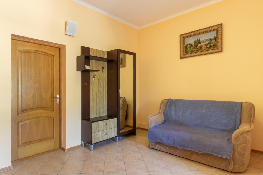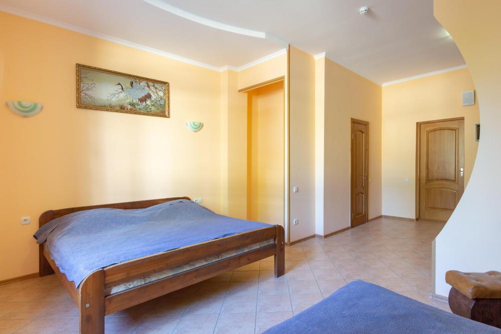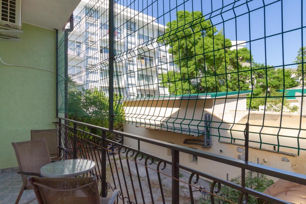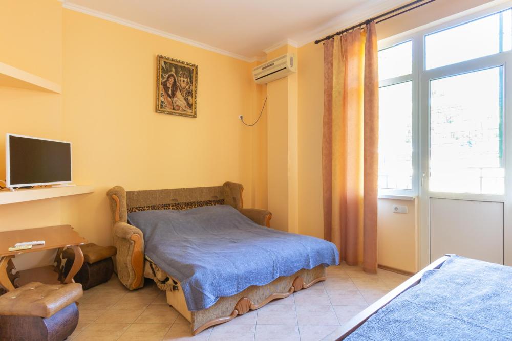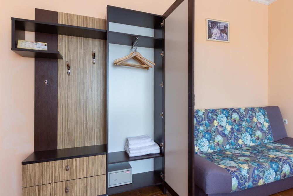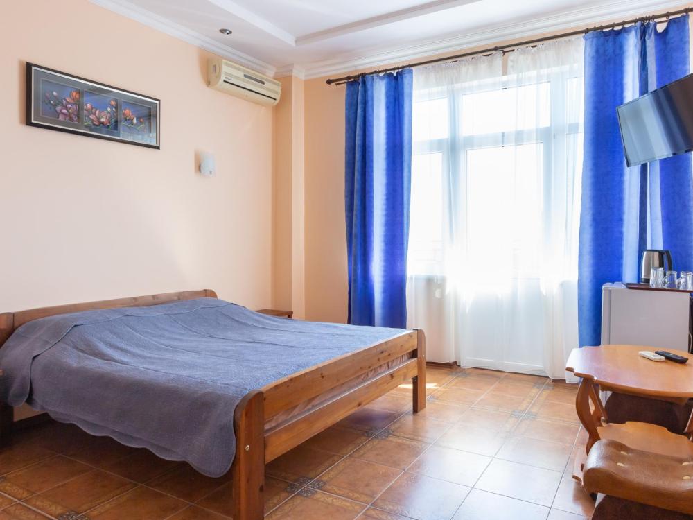 Номер стандарт четырехместный общей площадью 24 кв.м. с видом на море. Номер оснащен: шкаф, тумбочки, кровать двуспальная, диван-кровать, журнальный столик, балкон, посуда, техника (телевизор, кабельное ТВ, холодильник, электрочайник, кондиционер, сейф), санузел и душ в номере.
