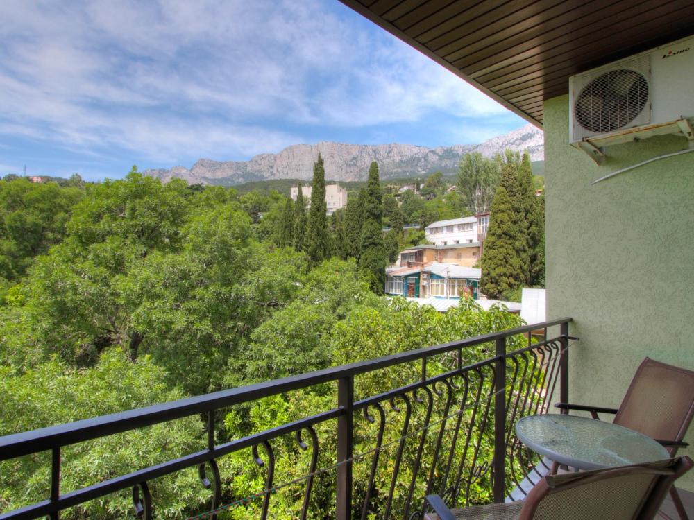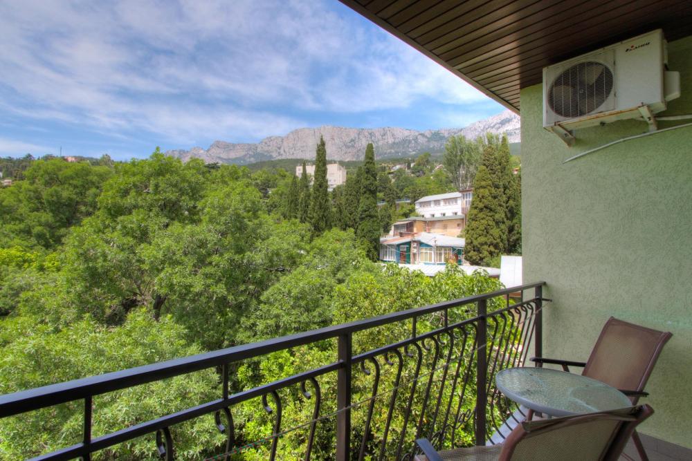 Романтический двухместный номер с видом на горы общей площадью 20 кв.м. Номер оснащен: шкаф, тумбочки, кровать двуспальная, журнальный столик, балкон, посуда, техника (телевизор, кабельное ТВ, холодильник, электрочайник, кондиционер, сейф), санузел и душ в номере.