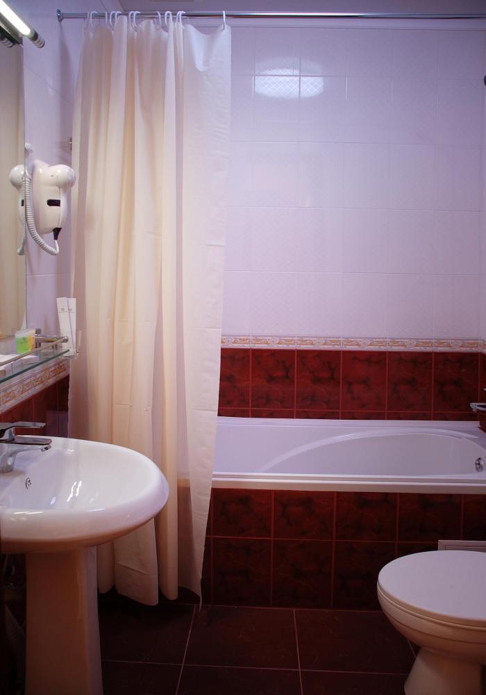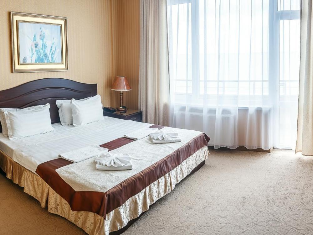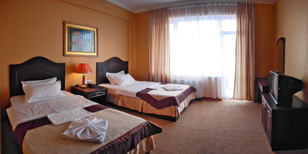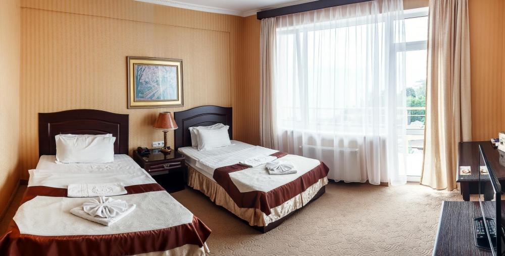 Номер стандарт комфорт общей площадью 28 кв.м. для размещения до 2-х гостей. Номер оснащен двуспальной или двумя раздельными кроватями, мини-баром, сейфом, телевизором, кондиционером, прикроватными тумбочками, шифоньером, зеркалом, телефоном, балконом (4-6 м2) с видом на море (столик, 2 кресла), ванной комнатой (3-4 м2) с феном, набором мини-парфюмерии, комплектом полотенец, халатами, тапочками.
