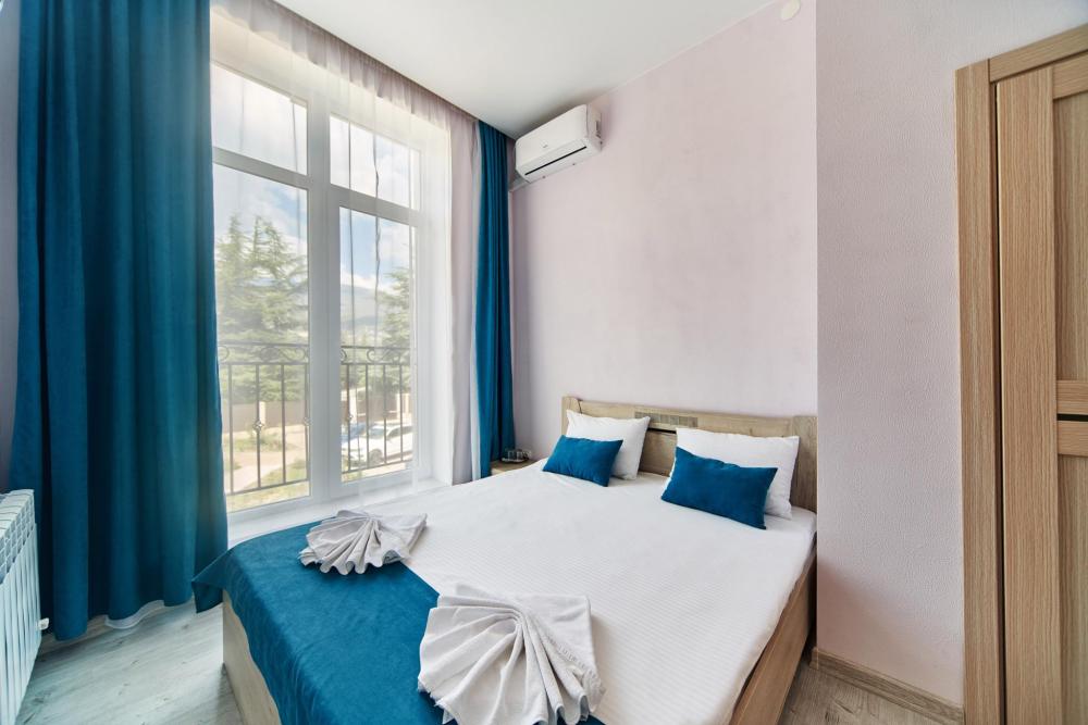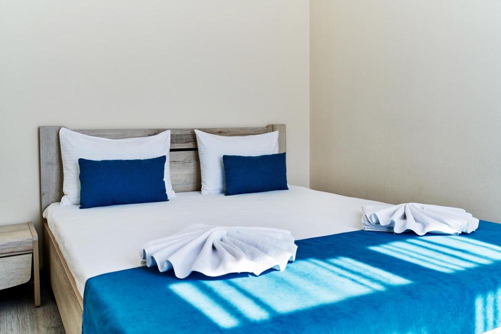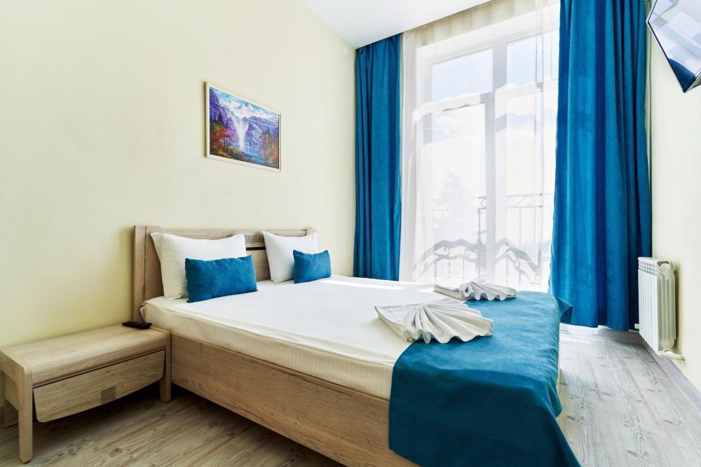 Однокомнатный номер стандарт с большой кроватью. Оснащение номера: WIFI, современные кровати, ТВ, кондиционер, центральное отопление, набор банных полотенец, пляжные полотенца, тапочки, мини парфюмерия при заезде, с/у с душевой кабиной.