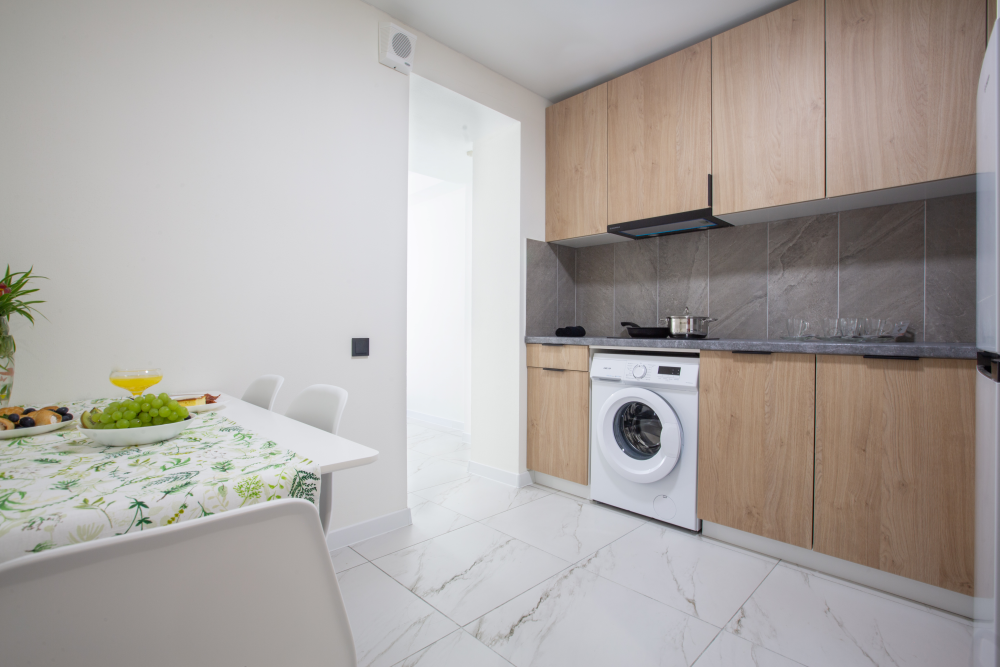 Однокомнатный номер с видом на парк. Площадь номера от 30 м². Вместимость 3 человека. Полностью укомплектованная кухня с бытовой техникой и набором посуды. Номер с балконом. Ванная комната оснащена душем. Оснащение номера: гардеробный шкаф, 2 односпальные кровати , 2 прикроватные тумбочки, 2 бра прикроватных, кресло раскладное (либо раскладная кровать по требованию), обеденная зона, полка для багажа, вешалка настенная, комплект садовой мебели на террасе, TV, сейф, холодильник, индукционная плита, микроволновая печь, кухонный инвентарь, стиральная машина, сушилка для белья, фен, комплект банных полотенец, набор мини-парфюмерии, тапочки, халаты.