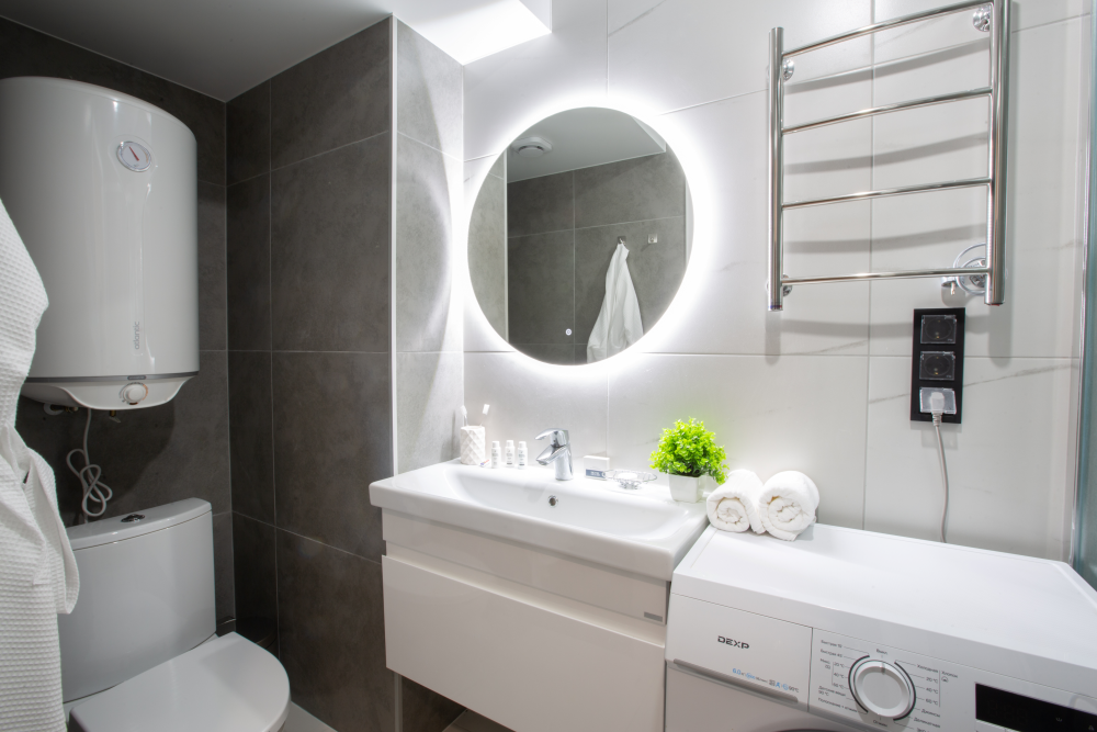 Просторный однокомнатный номер с панорамным видом на парк. Общая площадь номера 60 м². Номер с балконом. Ванная комната оснащена душем или ванной. Оснащение номера: гардеробный шкаф, 2 односпальные кровати, 2 прикроватные тумбочки, 2 бра прикроватных, диван раскладной, столовая зона, полка для багажа, вешалка настенная, балконная мебель, TV, телефон, сейф, холодильник, индукционная плита, микроволновая печь, кухонный инвентарь, стиральная машина, сушилка для белья, фен, комплект банных полотенец, набор мини-парфюмерии, тапочки, халаты.