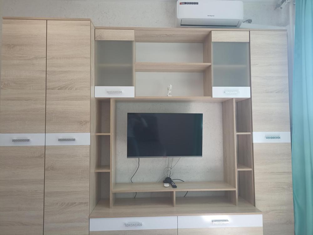 Двa двуcпaльных дивaна, один в комнaте, втоpoй на кухне, до 4-5 человeк. Wi-fi интернет 100 мб, Smart телевизор, кондиционер, холодильник, стиральная машина, утюг, фен, микроволновая печь, чайник, электрическая панель, стиральная доска, сушилка, наборы посуды и столовых приборов - все что нужно для комфортного проживания. При заселении предоставляется комплект постельного белья и наборы полотенец для каждого человека