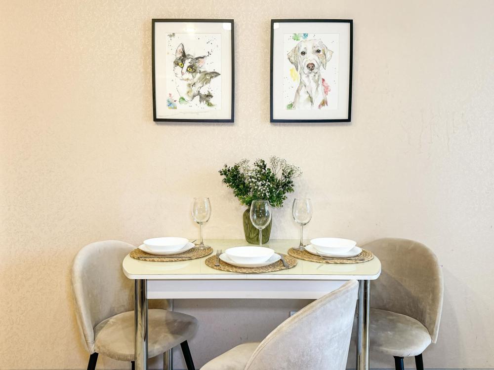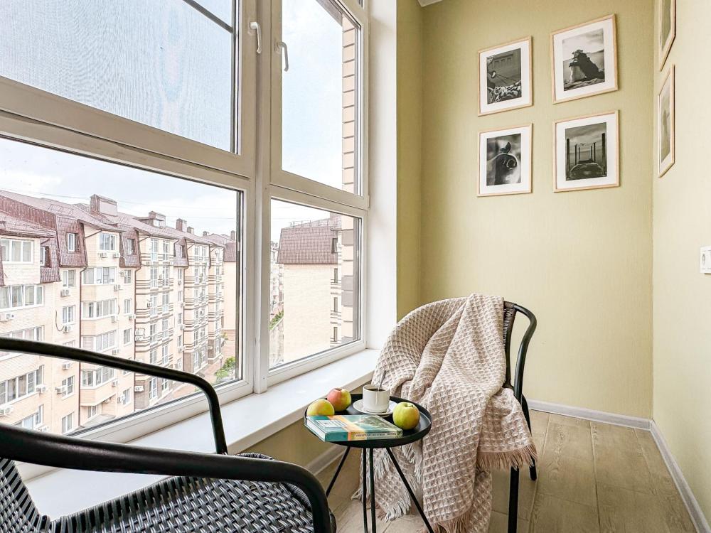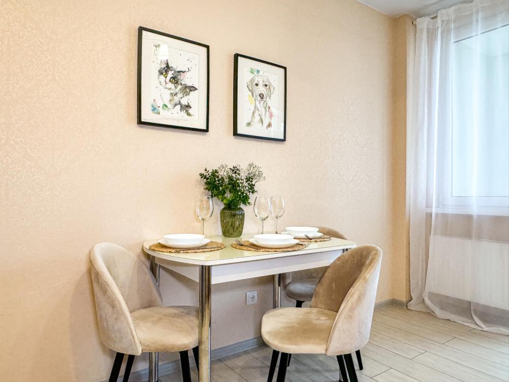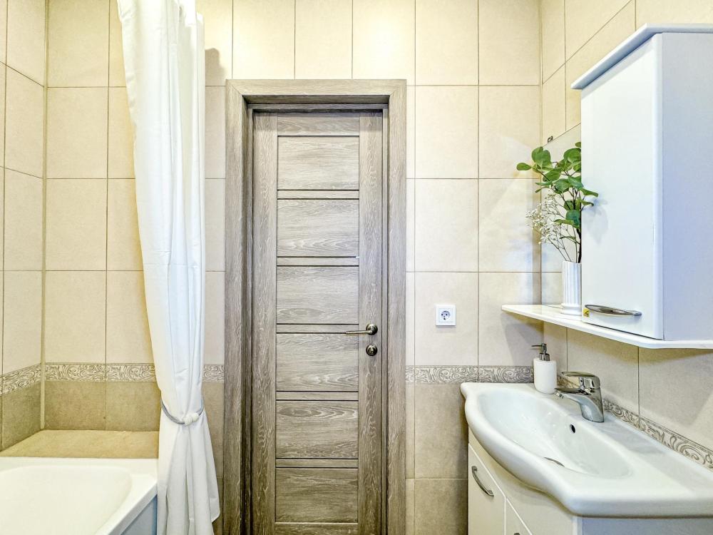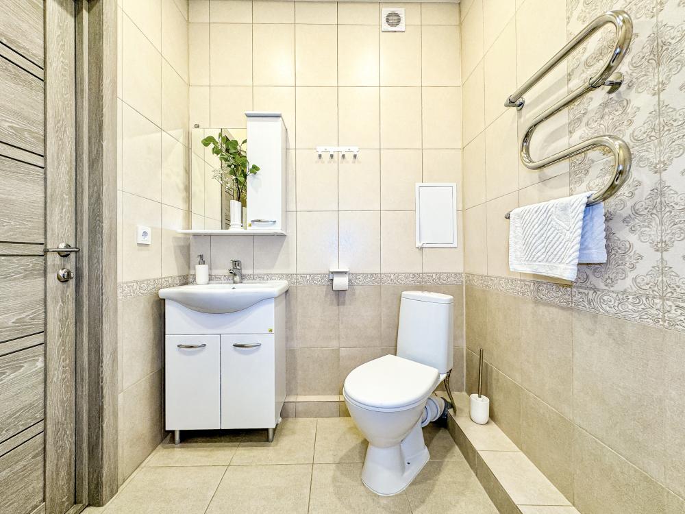 Уютные апартаменты, оборудованные всем необходимым для комфортного проживания. В апартаментах: двуспальная кровать с ортопедическим матрасом Аскона в спальне, удобный двуспальный диван на кухне, оборудованная кухня: холодильник, индукционная плита, микроволновая печь, чайник, вытяжка, стиральная машина, фен, утюг, сплит-система в спальне, сетка на окнах, набор посуды и столовых принадлежностей на 4 персоны, Смарт-ТВ и высокоскоростной Wi-Fi. Каждому гостю предоставляется по 2 полотенца (банное и для лица), полотенце для ног. 2 комплекта белого постельного белья. Застекленная лоджия с панорамным остеклением.
