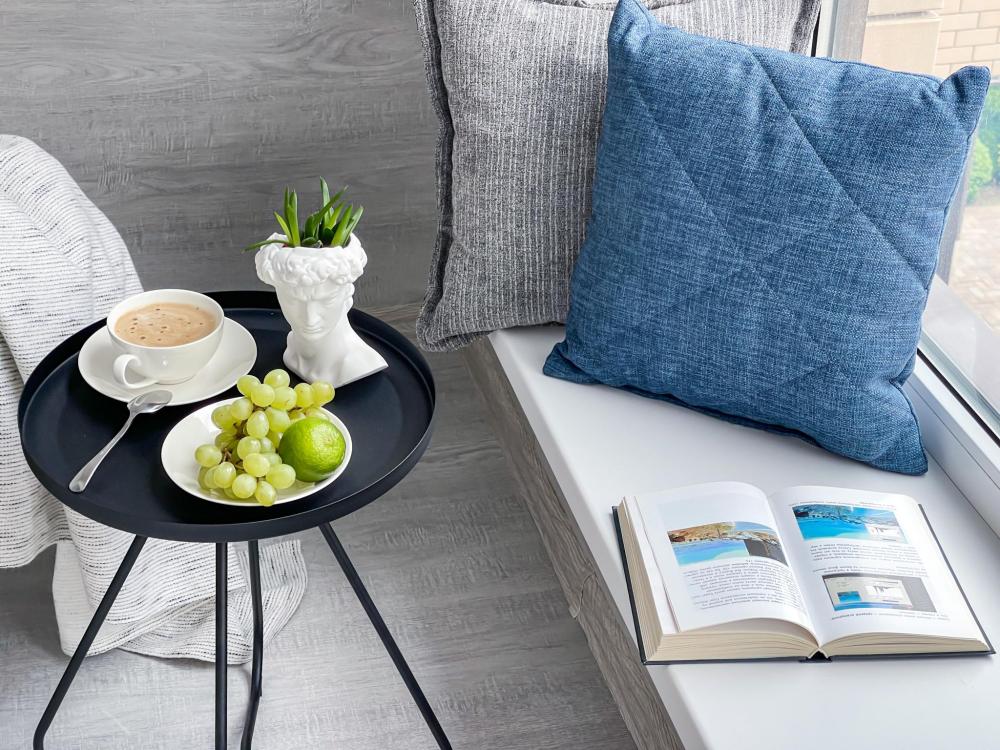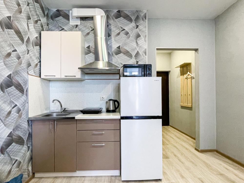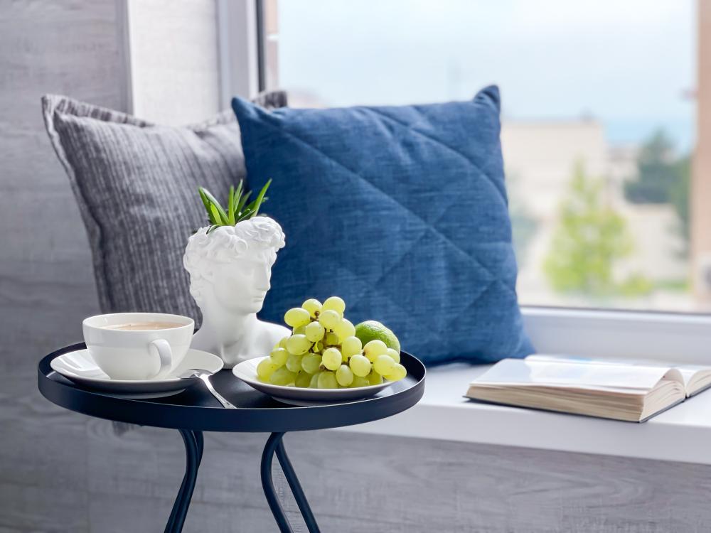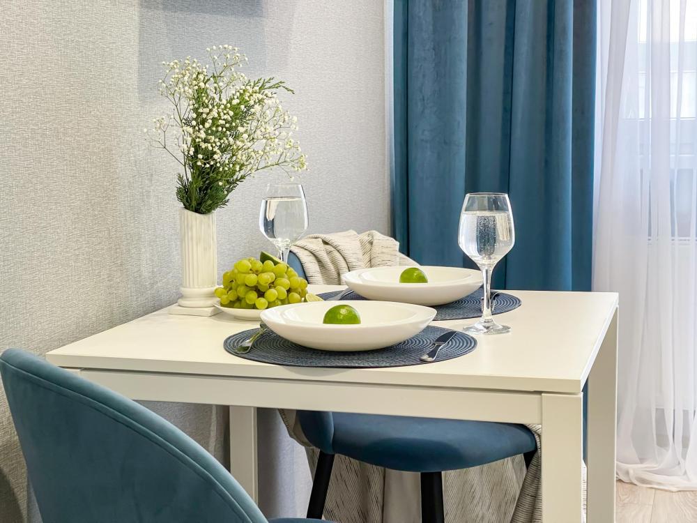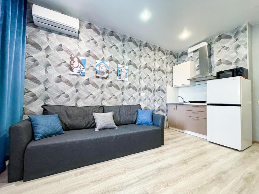 Уютные апартаменты студия, оборудованная всем необходимым для комфортного проживания. В апартаментах: удобный двуспальный диван, оборудованная кухня: холодильник, индукционная плита, микроволновая печь, чайник, вытяжка, стиральная машина, фен, утюг, сплит-система, сетка на окнах, вид на море, набор посуды и столовых принадлежностей на 4 персоны, смарт-ТВ и высокоскоростной Wi-Fi. Каждому гостю предоставляется по 2 полотенца (банное и для лица), полотенце для ног. Застекленная лоджия с панорамным остеклением, откуда открывается завораживающий вид на море.