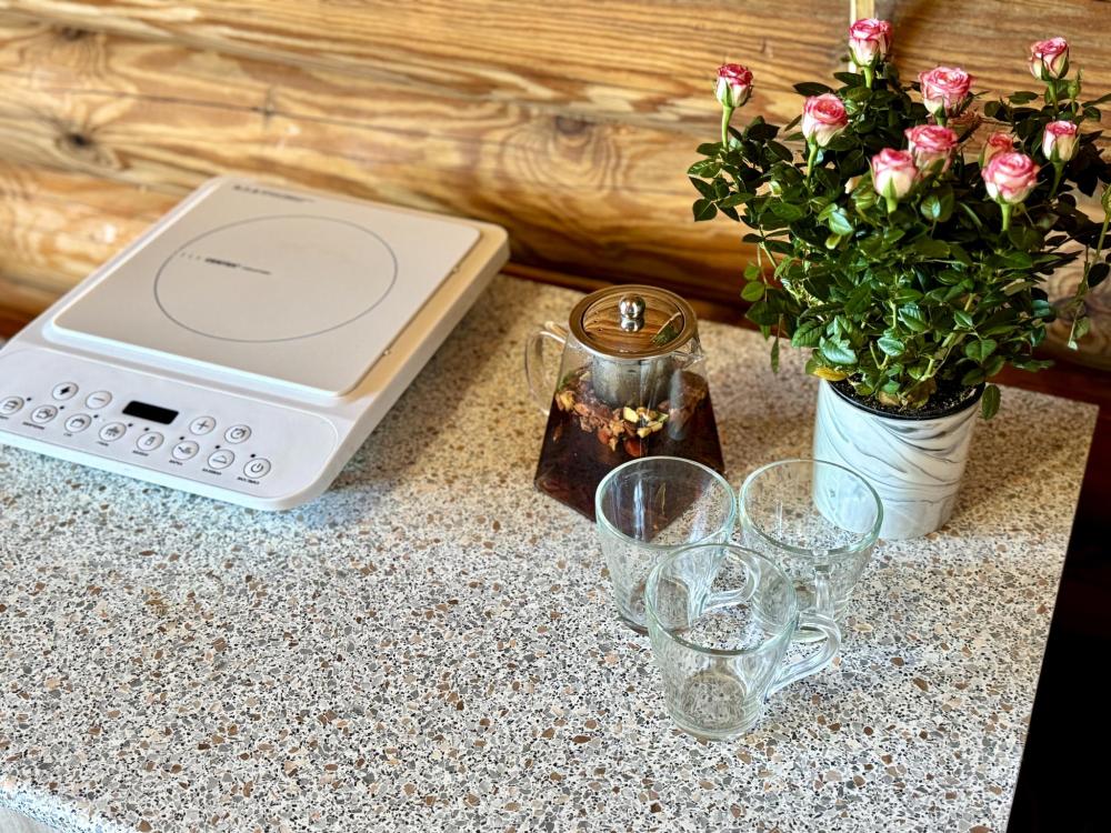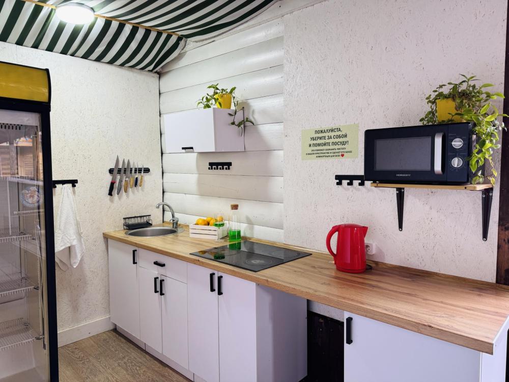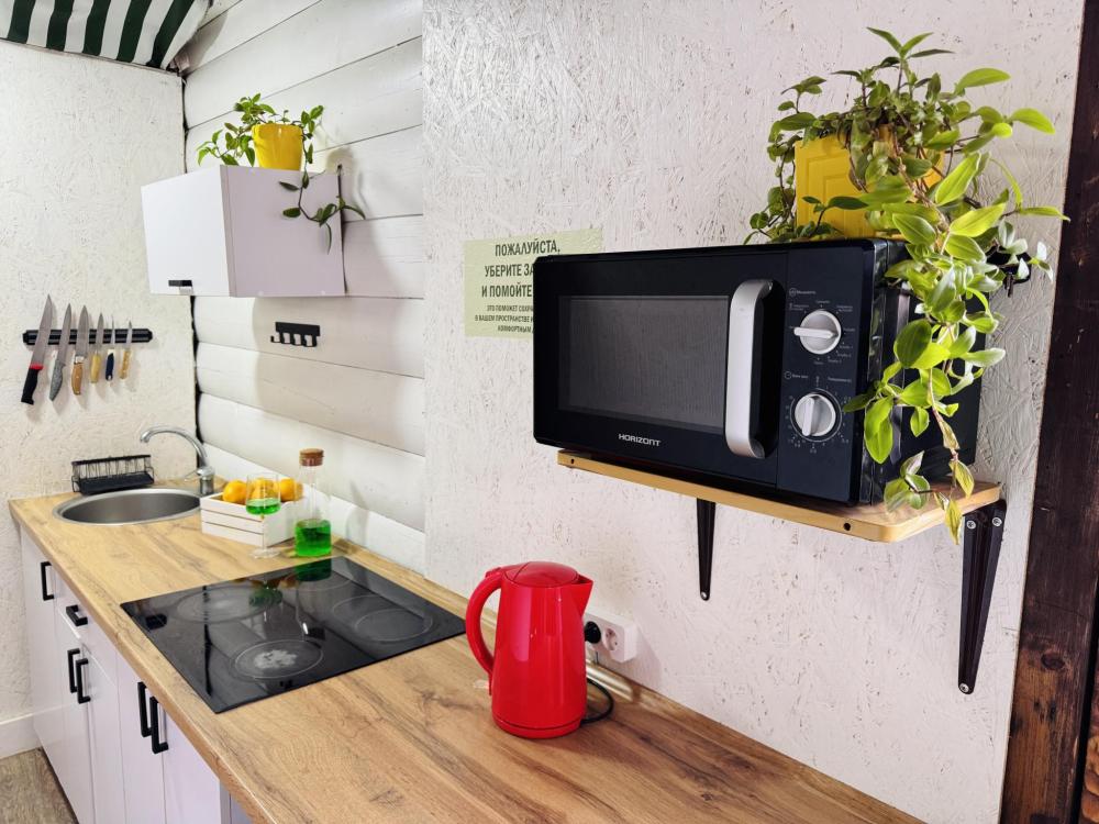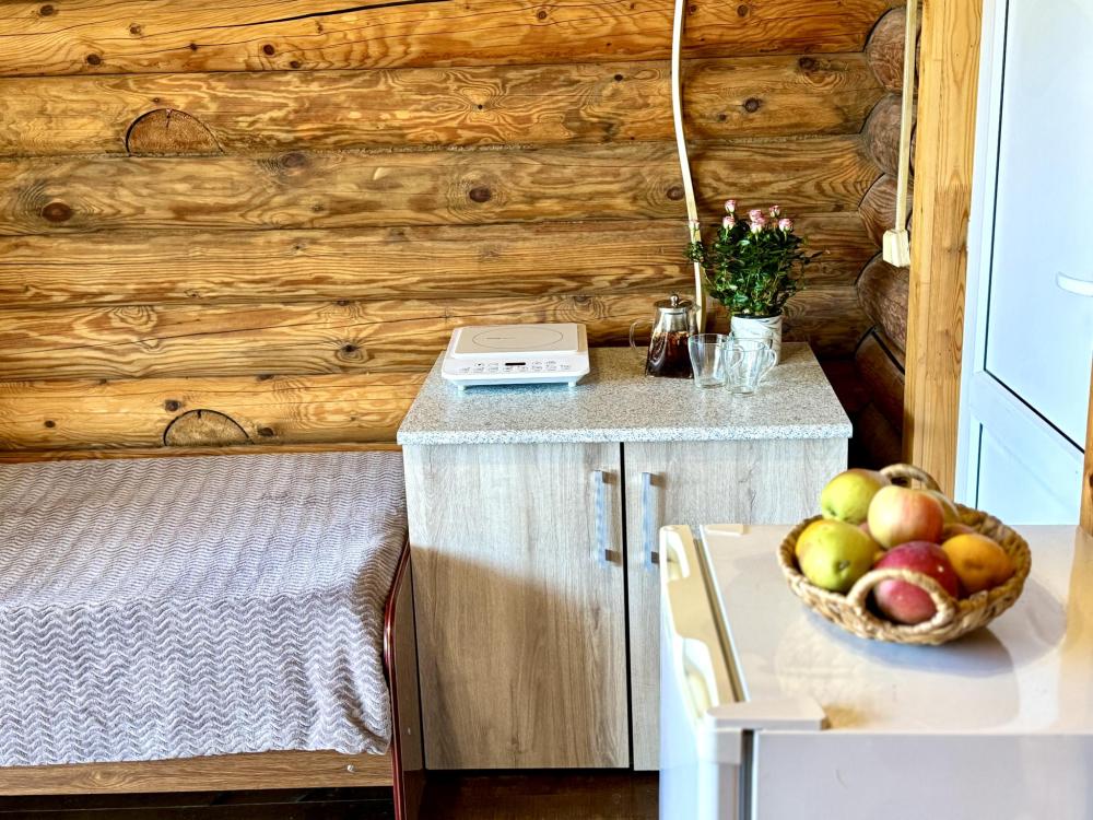 Уютный эко-домик с полным оснащением, подходящий для комфортного размещения 2-х человек. В домике имеется: оборудованная мини-кухня с варочной панелью, электрическим чайником и полным набором посуды, удобная двухспальная кровать, тумбочка и шкаф для хранения вещей, гигиенические принадлежности для душа, полностью оборудованный санузел с душем, мини-холодильник, телевизор, сплит-система, постельное белье, полотенца, wi-fi, своя терраса со столиком.