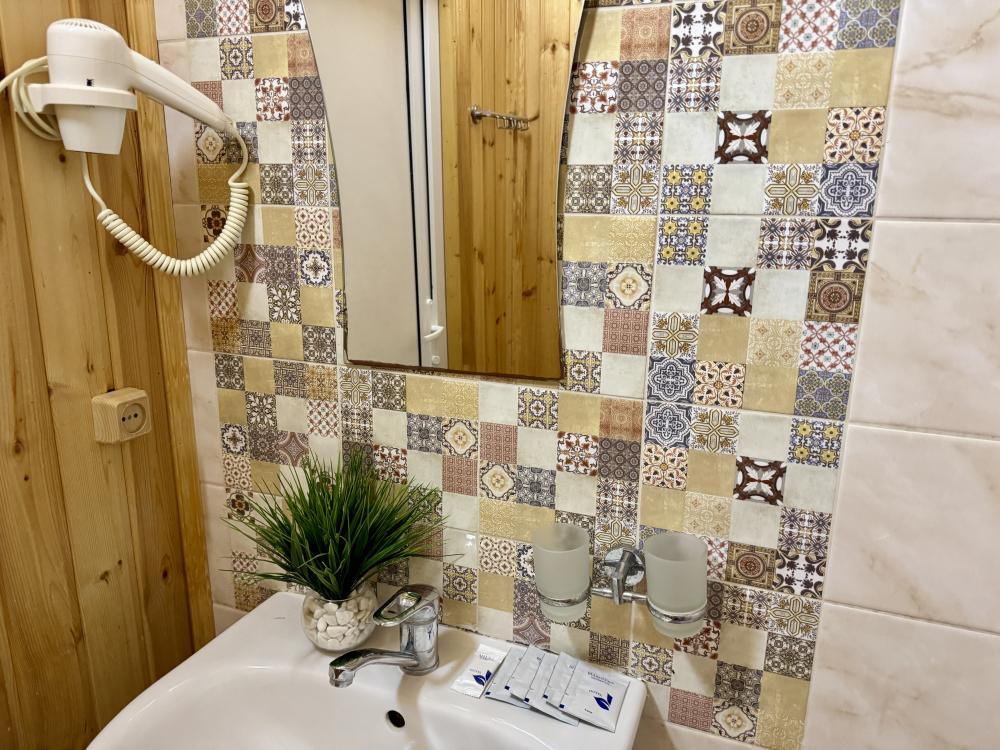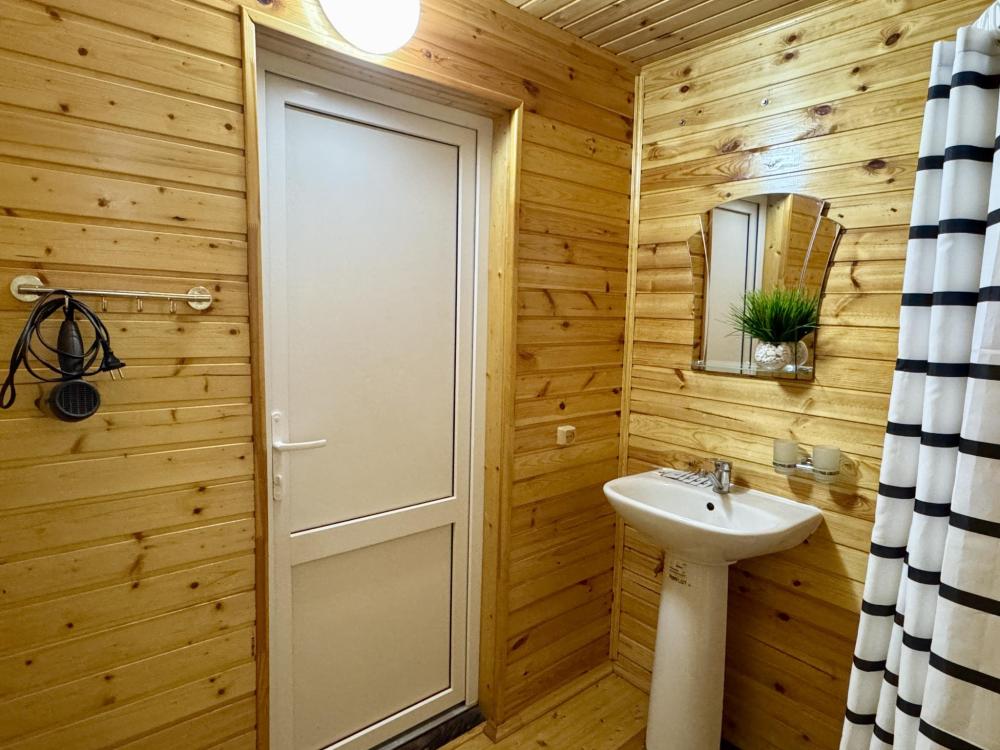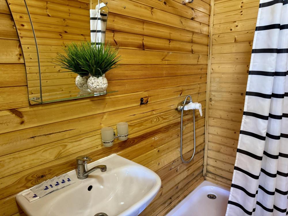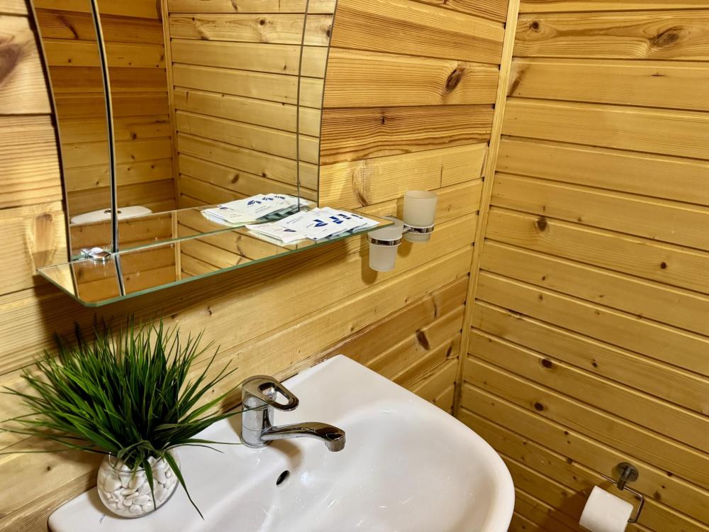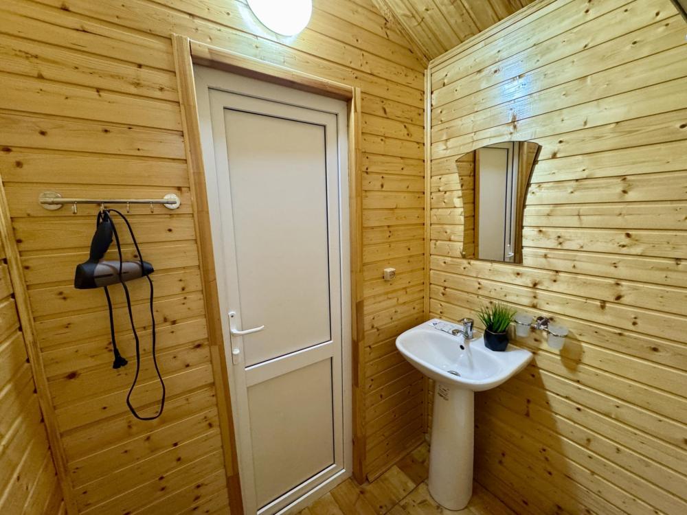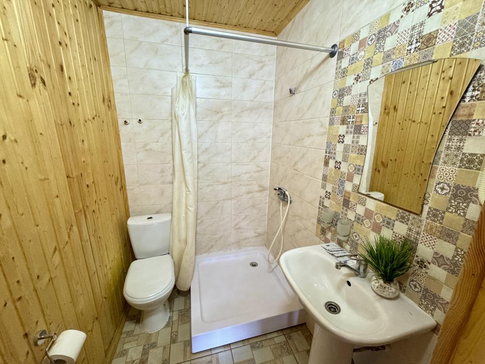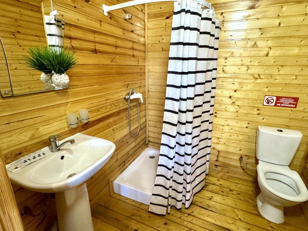 Уютный эко-домик подходит для проживания 5 человек и дополнительно маленькие дети без предоставления отдельного спального места могут проживать бесплатно! У дома есть своя терраса с удобными стульями и столиком. В домике: двуспальная и односпальная кровати, диван, телевизор, сплит-система, шкаф для вещей, тумбочка, электрический чайник, набор чайной посуды, постельное белье, wi-fi. Ванная комната: душ, раковина, туалет, фен, полотенца, набор гигиенических принадлежностей. Ванная комната: душ, раковина, туалет, фен, полотенца, набор гигиенических принадлежностей.