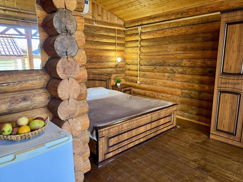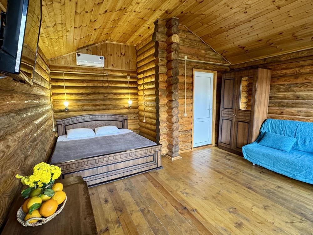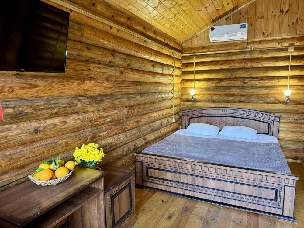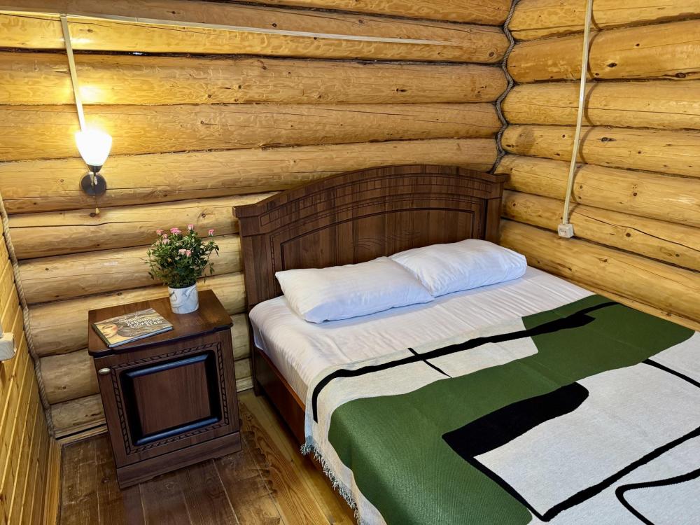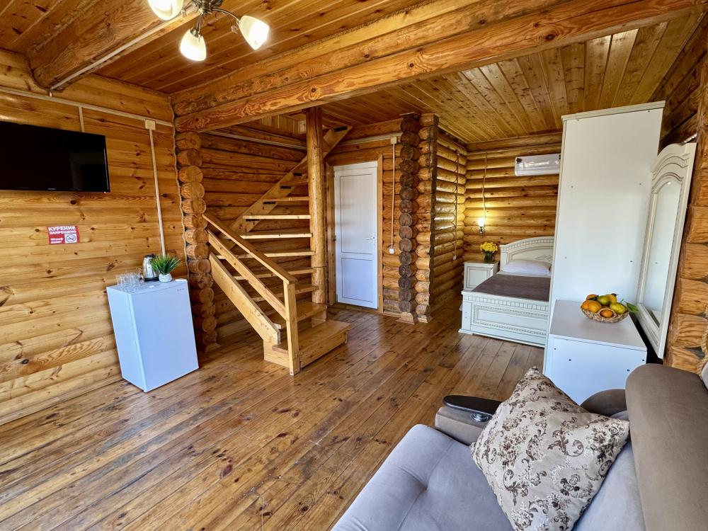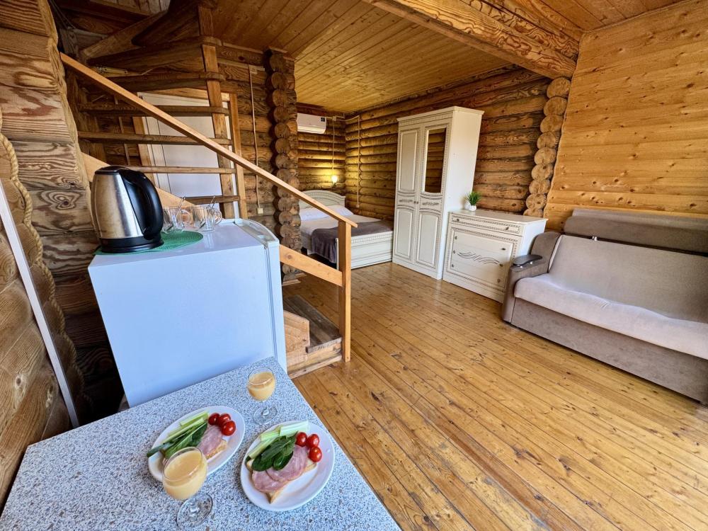 Уютный эко-домик с полным оснащением, подходящий для комфортного размещения четырех человек. В домике имеется: удобная двухспальная кровать и комфортный двухспальный диван, тумбочка и шкаф для хранения вещей, гигиенические принадлежности для душа, полностью оборудованный санузел с душем, мини-холодильник, набор чайной посуды, электрический чайник, телевизор, сплит-система, постельное белье, полотенца, wi-fi.