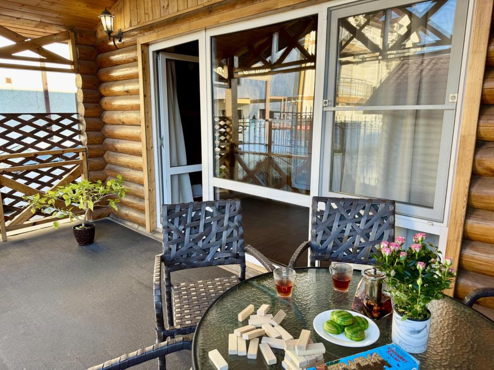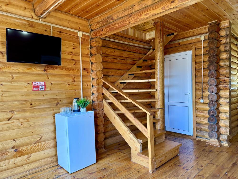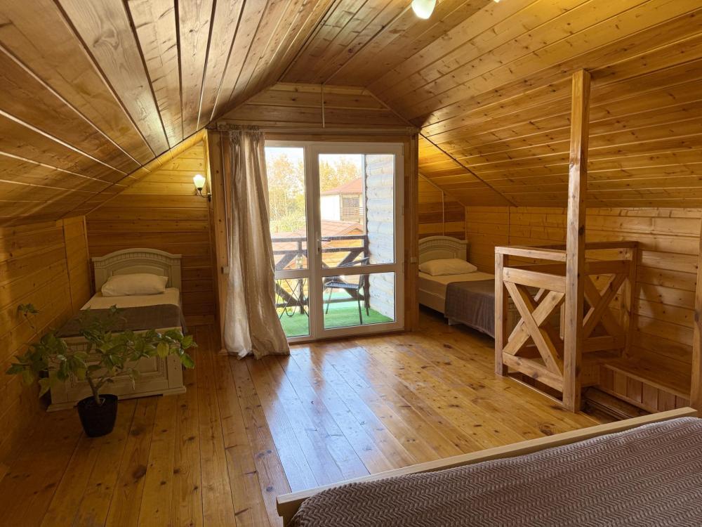 Уютный эко-домик на 6-8 человек и дополнительно дети без предоставления отдельного спального места могут проживать бесплатно! Возле дома есть беседка с лавками и столом. На первом этаже: двуспальная кровать и диван двуспальный (в качестве дополнительного места), шкаф для вещей и комод с зеркалом и ящиками, телевизор, сплит-система, электрический чайник, набор чайной посуды, постельное белье, полотенца, wi-fi, санузел с душем, фен, полотенца, гигиенические принадлежности. На втором этаже: одна двуспальная кровать и две односпальные кровати, тумбочка, выход на балкон.