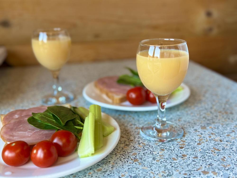 Уютный эко-домик с полным оснащением, подходящий для комфортного размещения от 5 до 7 человек и дополнительно возможно проживание деток без предоставления отдельного спального места. На улице есть терраса с удобными стульями и столиком. В первой комнате: комфортная двухспальная и односпальная кровать, двухстворчатый шкаф для вещей, телевизор, сплит-система. Во второй комнате: двухспальная кровать и двуспальный диван, шкаф для вещей, телевизор, сплит-система, панорамные окна, кухонный гарнитур с варочной панелью, электрическим чайником и полным набором посуды, тумбочка, wi-fi, постельное белье. В ванной комнате: душ, туалет, раковина, гигиенические принадлежности для душа, фен, полотенца.