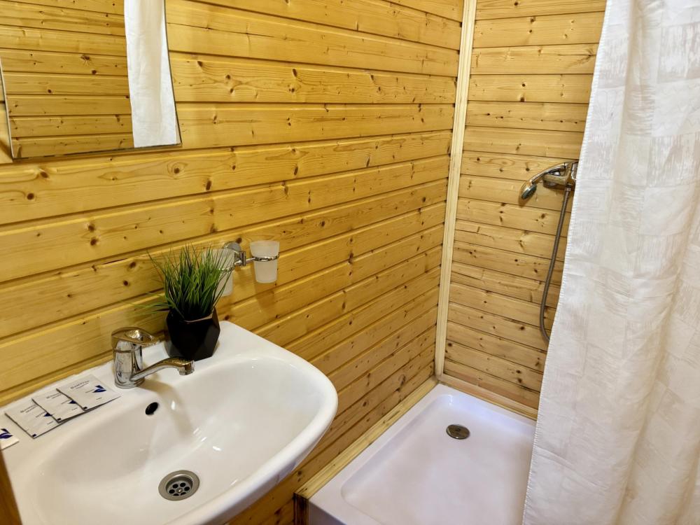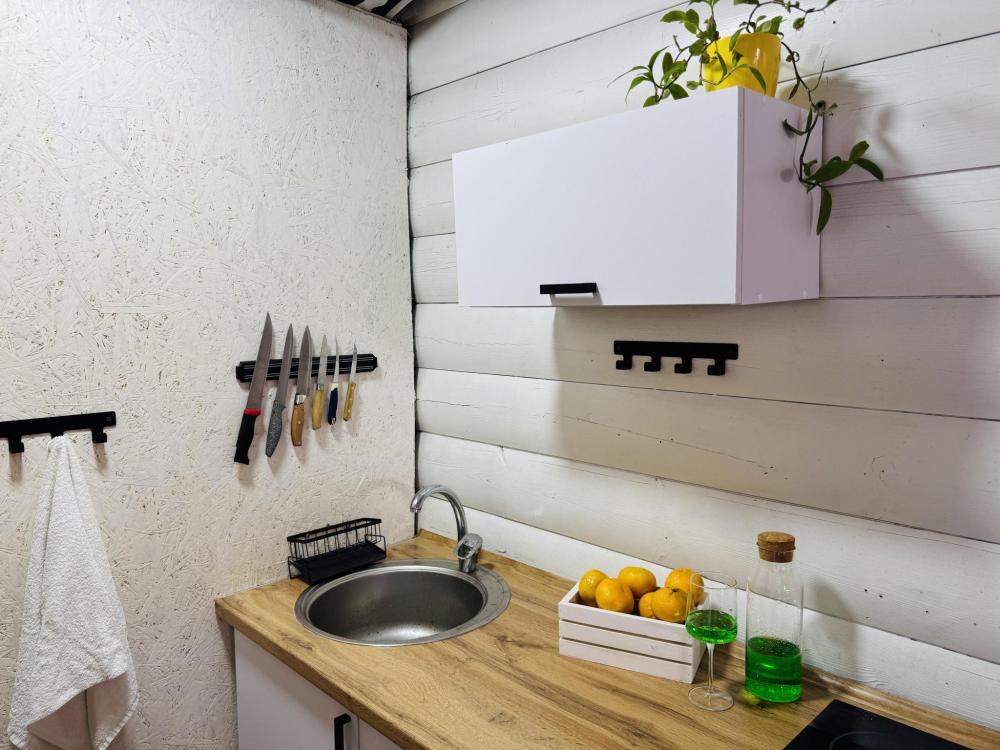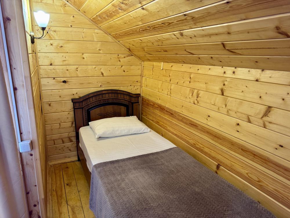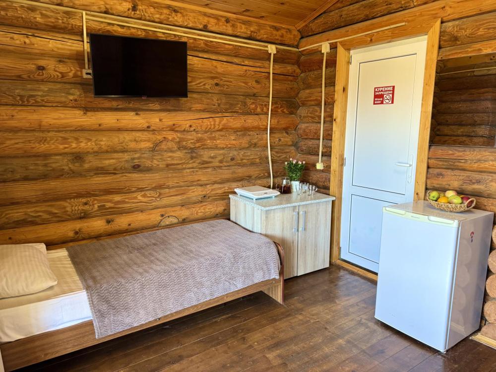 Уютный эко-домик с полным оснащением для одного человека. В домике имеется: тумбочка и шкаф для хранения вещей, гигиенические принадлежности для душа, полностью оборудованный санузел с душем, удобная односпальная кровать, мини-холодильник, набор чайной посуды, электрический чайник, телевизор, сплит-система, постельное белье, полотенца, wi-fi.