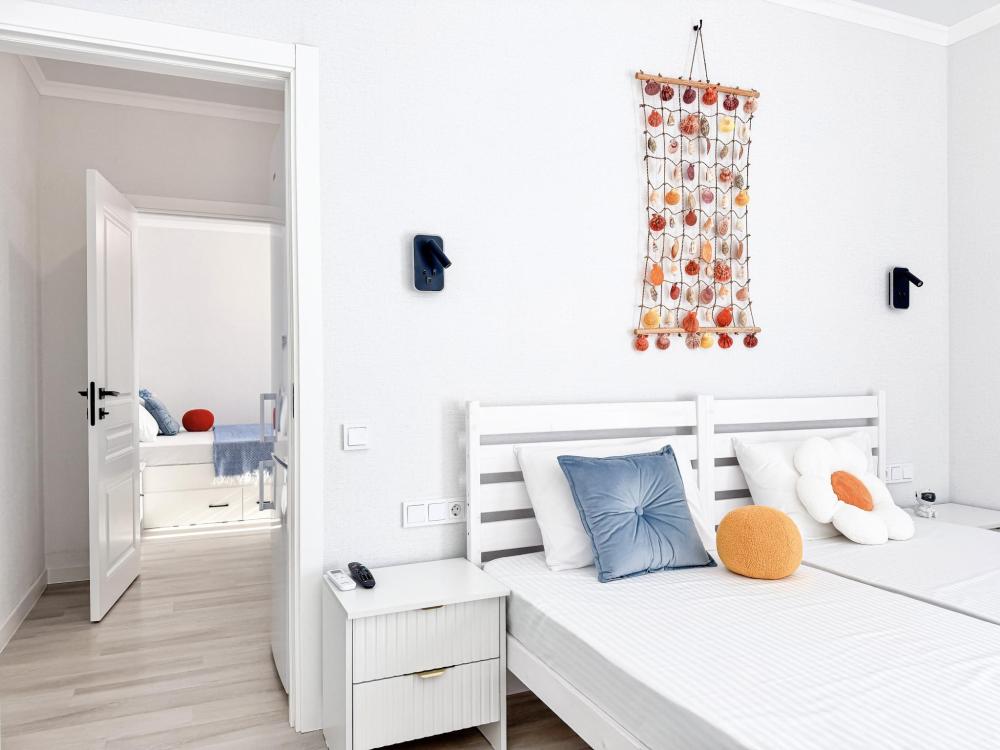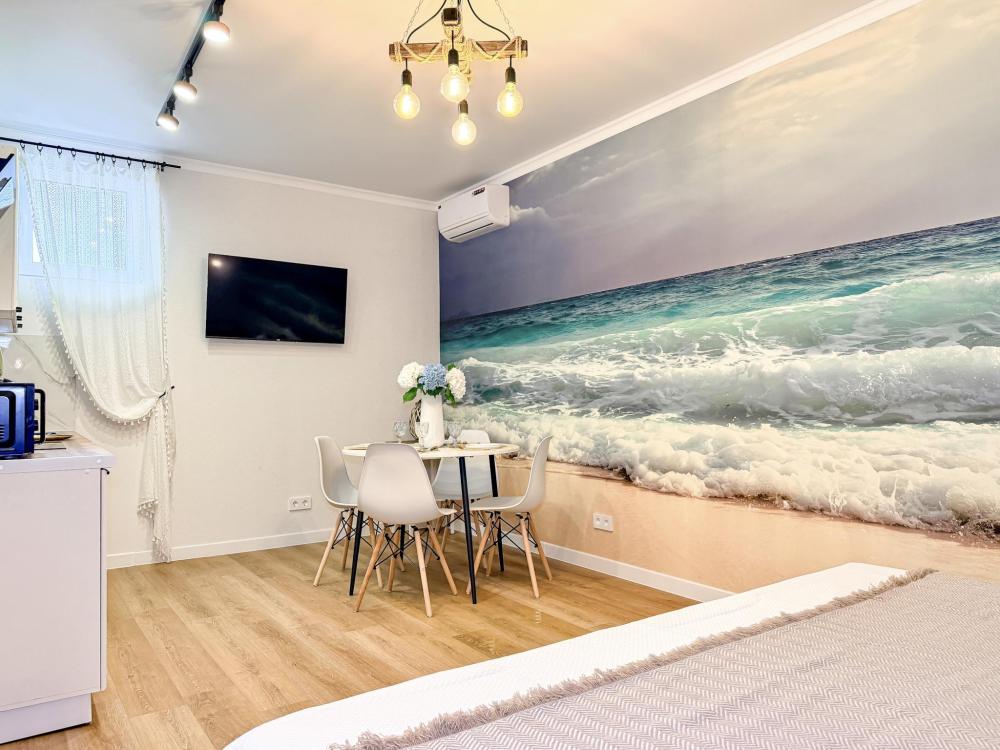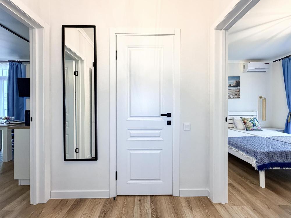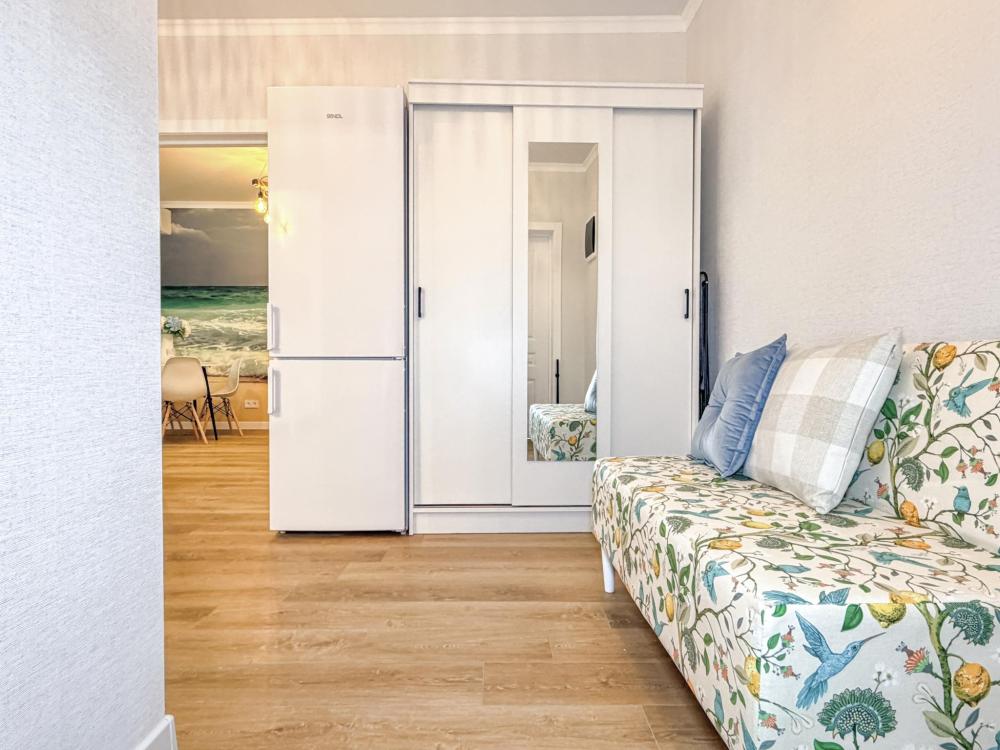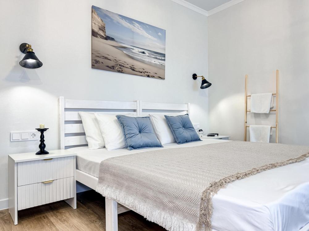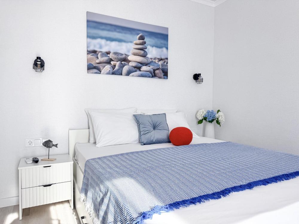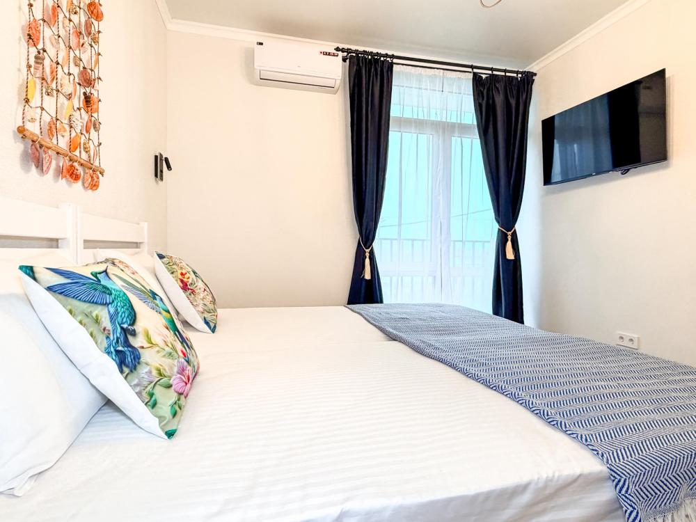 Апартаменты «Море» — это уютные двухкомнатные апартаменты на 4 персон, интерьер которых объединяет два современных стиля: самерсендс и хамстонс. В интерьере много мягкого естественного света, текстиля и природных оттенков. Мебель простая, но очень удобная, декор — минималистичный, с морскими и пляжными акцентами. Хочется отметить атмосферу лёгкости и покоя, которая позволяет максимально насладиться отдыхом на морском побережье в Анапе. Спальные места: спальня: двуспальная кровать 180×200 с ортопедическим матрасом (или 2 кровати односпальные), обеспечивающими комфортный и здоровый сон. Гостиная: двуспальная кровать 180×200 с ортопедическим матрасом. Кухня: полностью оборудованная кухня со всеми необходимыми принадлежностями для приготовления еды: варочная панель, вытяжка, большой холодильник с морозильной камерой, микроволновая печь, электрочайник, посуда, столовые приборы, кастрюли, сковороды и удобная обеденная зона на 4 персоны. Ванная комната: современная душевая система с тропическим душем, комплект полотенец, фен и все необходимые туалетные принадлежности (шампунь, гель для душа, мыло). Балкон: выход на балкон с мебельной группой: столик и стулья для приятного времяпрепровождения на свежем воздухе.