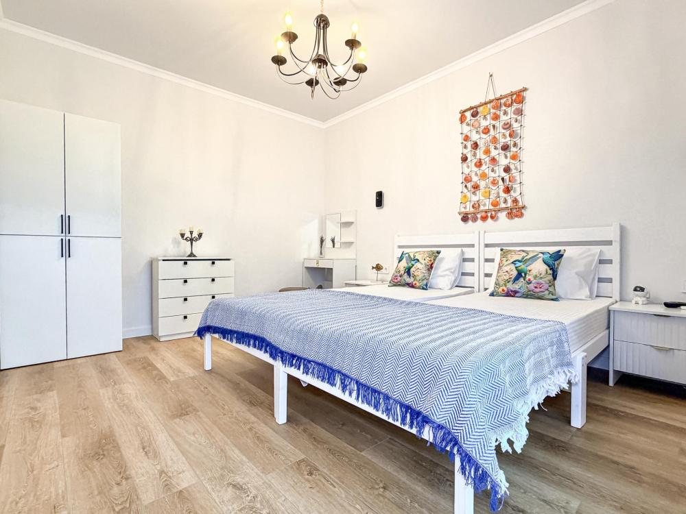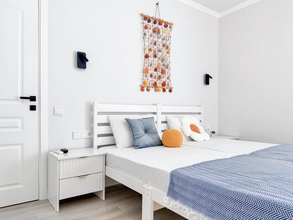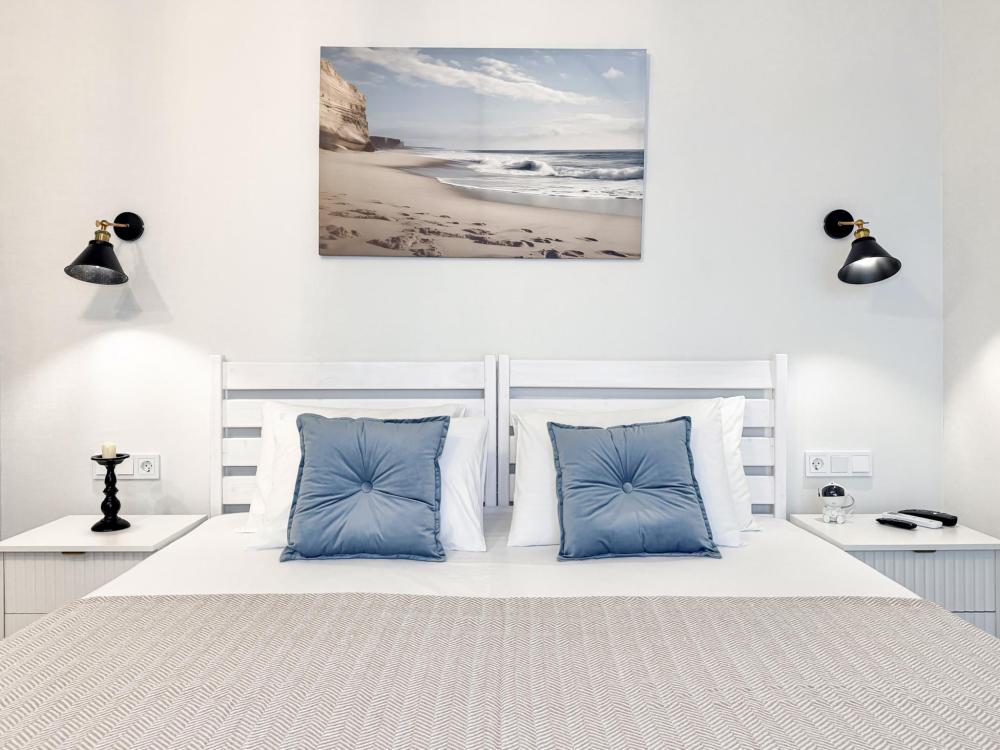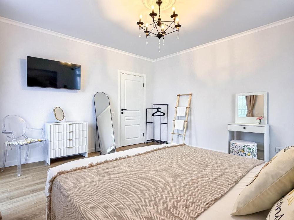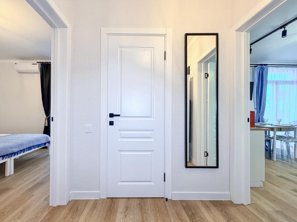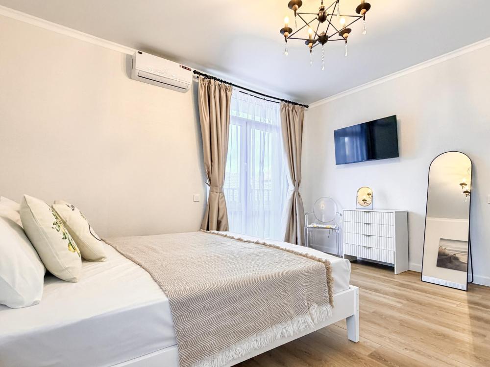 Апартаменты «Море» — это уютные двухкомнатные апартаменты на 4 персон, интерьер которых объединяет два современных стиля: самерсендс и хамстонс. В интерьере много мягкого естественного света, текстиля и природных оттенков. Мебель простая, но очень удобная, декор — минималистичный, с морскими и пляжными акцентами. Хочется отметить атмосферу лёгкости и покоя, которая позволяет максимально насладиться отдыхом на морском побережье в Анапе. Спальные места: спальня: двуспальная кровать 180×200 с ортопедическим матрасом (или 2 кровати односпальные), обеспечивающими комфортный и здоровый сон. Гостиная: двуспальная кровать 180×200 с ортопедическим матрасом. Кухня: полностью оборудованная кухня со всеми необходимыми принадлежностями для приготовления еды: варочная панель, вытяжка, большой холодильник с морозильной камерой, микроволновая печь, электрочайник, посуда, столовые приборы, кастрюли, сковороды и удобная обеденная зона на 4 персоны. Ванная комната: современная душевая система с тропическим душем, комплект полотенец, фен и все необходимые туалетные принадлежности (шампунь, гель для душа, мыло). Балкон: выход на балкон с мебельной группой: столик и стулья для приятного времяпрепровождения на свежем воздухе.