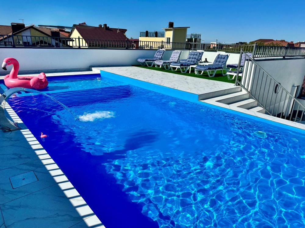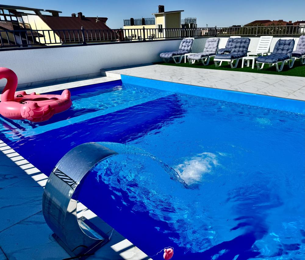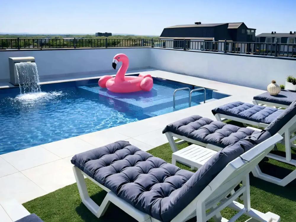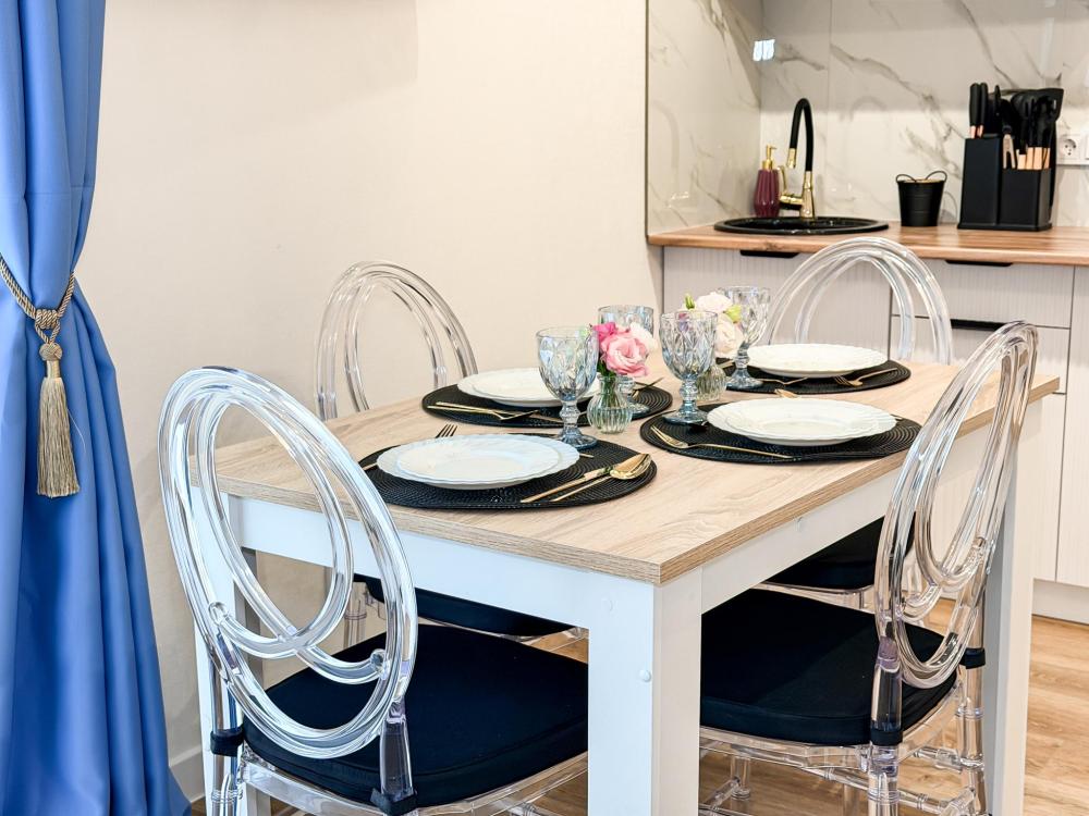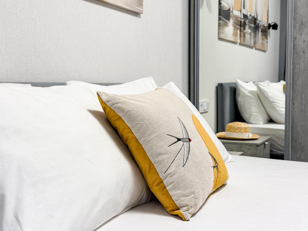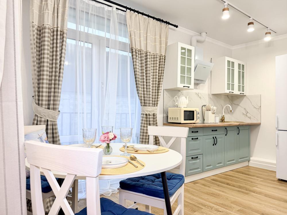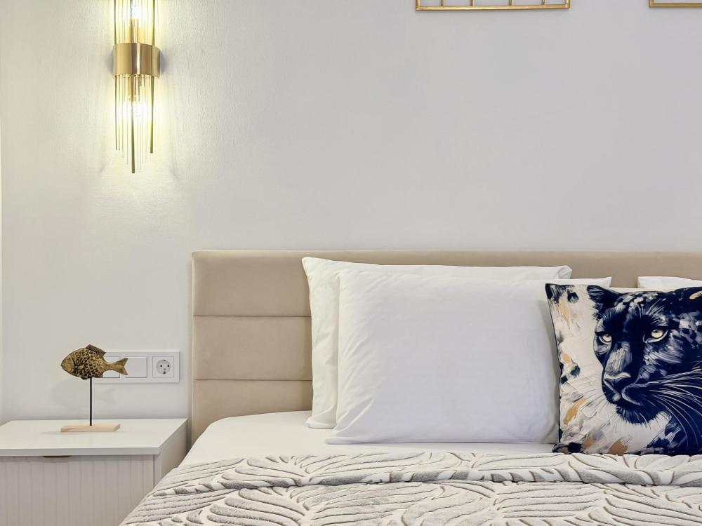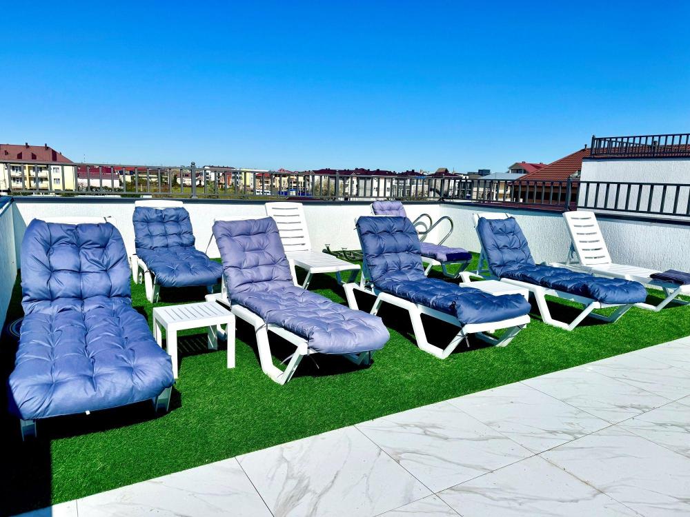 Апартаменты «Пеликан» — это просторные и уютные двухкомнатные апартаменты с уникальным интерьером, где гармонично сочетаются два стиля: самерсендс и хамстонс. Светлые и природные оттенки, мягкие ткани и лаконичная мебель создают атмосферу спокойствия и легкости, что позволяет максимально насладиться отдыхом на морском побережье в Анапе. Из окон открывается потрясающий вид на город— каждый день можно наслаждаться красивыми закатами и пейзажами. Приятным бонусом станет выход из апартаментов прямо к бассейну с лаундж-зоной: здесь удобно отдыхать, загорать или встречаться с друзьями. Спальные места: спальня: двуспальная кровать 180×200 с ортопедическим матрасом (или 2 кровати односпальные), обеспечивающими комфортный и здоровый сон. Гостиная: двуспальная кровать 180×200 с ортопедическим матрасом. Кухня: полностью оборудованная кухня со всеми необходимыми принадлежностями для приготовления еды: варочная панель, вытяжка, большой холодильник с морозильной камерой, микроволновая печь, электрочайник, посуда, столовые приборы, кастрюли, сковороды и удобная обеденная зона на 4 персоны. Ванная комната: современная душевая система с тропическим душем, комплект полотенец, фен и все необходимые туалетные принадлежности (шампунь, гель для душа, мыло). Балкон: выход на балкон с мебельной группой: столик и стулья для приятного времяпрепровождения на свежем воздухе.