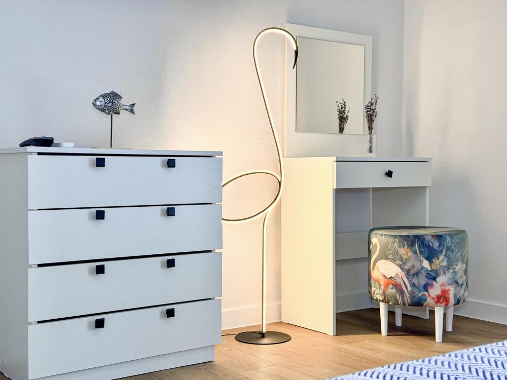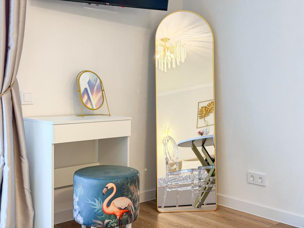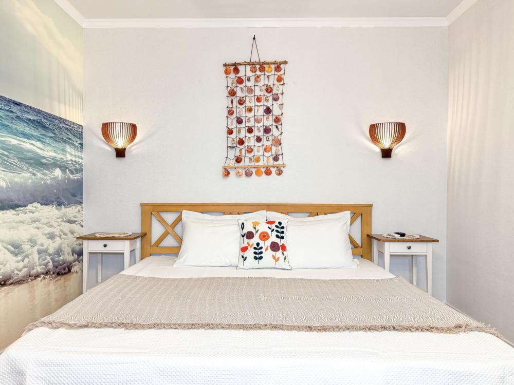 Апартаменты «Фламинго» — это уютные двухкомнатные апартаменты на 4 персон, интерьер которых объединяет два современных стиля: самерсендс и хамстонс. В интерьере много мягкого естественного света, текстиля и природных оттенков. Мебель простая, но очень удобная, декор — минималистичный, с морскими и пляжными акцентами. Хочется отметить атмосферу лёгкости и покоя, которая позволяет максимально насладиться отдыхом на морском побережье в Анапе. Спальные места: спальня: двуспальная кровать 180×200 с ортопедическим матрасом (или 2 кровати односпальные), обеспечивающими комфортный и здоровый сон. Гостиная: двуспальная кровать 180×200 с ортопедическим матрасом. Кухня: полностью оборудованная кухня со всеми необходимыми принадлежностями для приготовления еды: варочная панель, вытяжка, большой холодильник с морозильной камерой, микроволновая печь, электрочайник, посуда, столовые приборы, кастрюли, сковороды и удобная обеденная зона на 4 персоны. Ванная комната: современная душевая система с тропическим душем, комплект полотенец, фен и все необходимые туалетные принадлежности (шампунь, гель для душа, мыло). Балкон: выход на балкон с мебельной группой: столик и стулья для приятного времяпрепровождения на свежем воздухе.