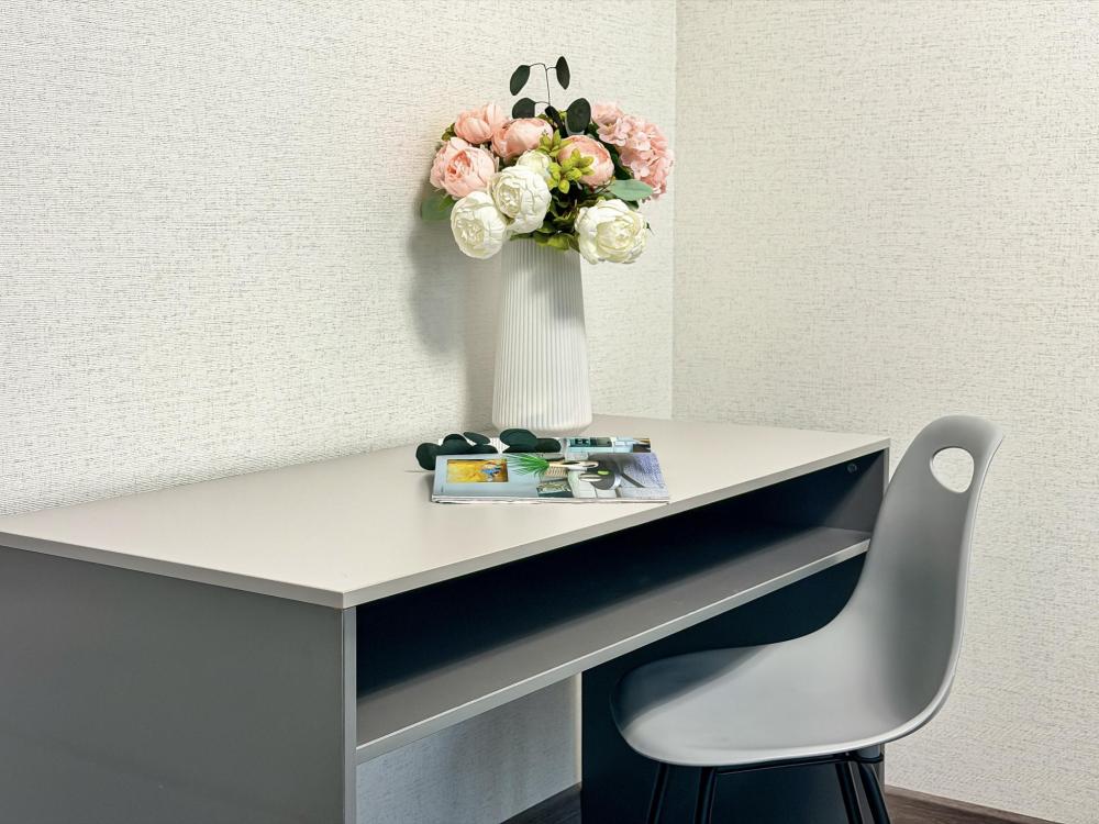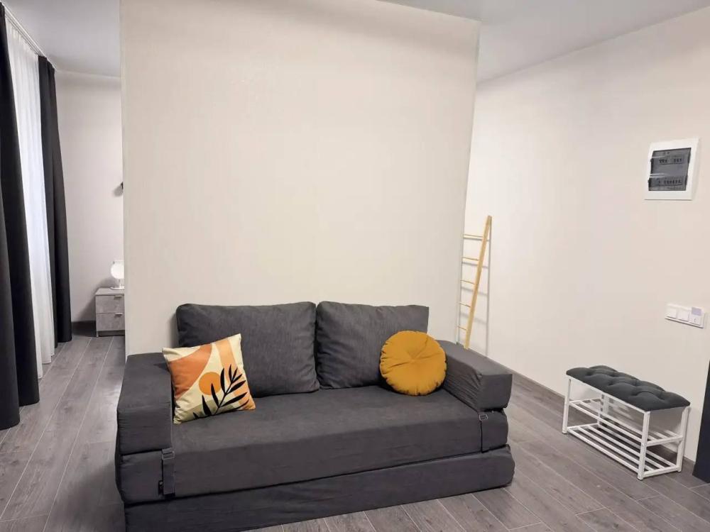 Эта светлая студия площадью 28 кв.м прекрасно подойдет для семей, пар и гостей до 3 человек, которые ценят продуманный современный интерьер и высокий уровень удобств. К вашим услугам просторная двуспальная кровать (160×200 см) с отличным ортопедическим матрасом и удобный раскладной диван 140*190. По запросу предоставляется детская кроватка-манеж. В студии предусмотрен совмещённый санузел с современной душевой системой и стиральной машиной. Все необходимые мелочи для комфорта: полотенца, фен, мыло, шампунь и гель для душа — уже ждут гостей. Кухня оборудована всем необходимым для самостоятельного приготовления еды: полноразмерный двухкамерный холодильник, микроволновая печь, варочная плита, чайник, а также полный набор посуды для готовки и сервировки, обеденная зона. Для удобства в номере предусмотрены шкаф для одежды, прикроватные тумбочки, телевизор, рабочая зона, сплит-система и напольная раскладная сушка для белья. Гладильные принадлежности находятся на этаже в общем доступе. Чистое, качественное постельное бельё и полотенца. Бесплатный Wi-Fi обеспечивает стабильное подключение к интернету на протяжении всего пребывания.