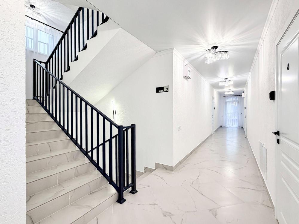 Четырехместные апартаменты с кухней в гостевом доме "Апарт Июль" в Анапе— это современное и просторное решение для семейного отдыха или размещения компании друзей. Номер рассчитан на 4 персон. Интерьер выполнен в стиле хай-тек с дизайнерским ремонтом: лаконичные формы, нейтральная цветовая палитра, продуманная эргономика и качественная мебель создают атмосферу комфорта и уюта. Спальные места: спальня: двуспальная кровать 180×200 с ортопедическим матрасом, обеспечивающими комфортный и здоровый сон гостиная: двуспальная кровать 180×200 с ортопедическим матрасом. Кухня: полностью оборудованная кухня со всеми необходимыми принадлежностями для приготовления еды: варочная панель, вытяжка, большой холодильник с морозильной камерой, микроволновая печь, электрочайник, посуда, столовые приборы, кастрюли, сковороды и удобная обеденная зона на 4 персоны. Ванная комната: современная душевая система, комплект полотенец, фен и все необходимые туалетные принадлежности (шампунь, гель для душа, мыло). Балкон: выход на балкон с мебельной группой: столик и стулья для приятного времяпрепровождения на свежем воздухе.