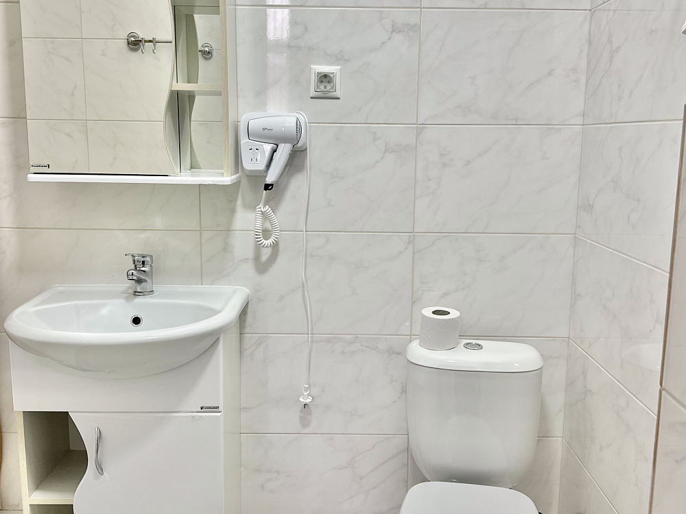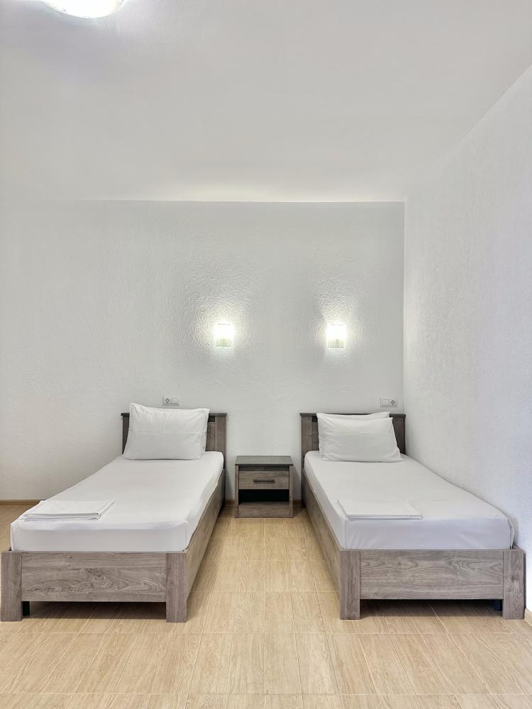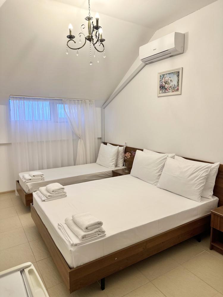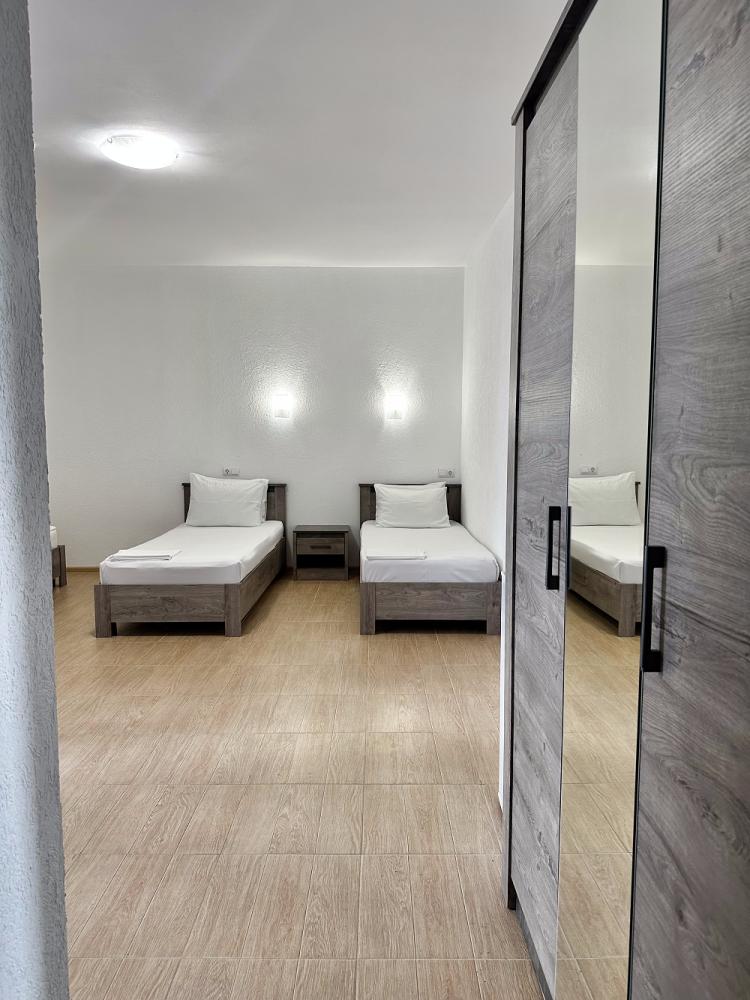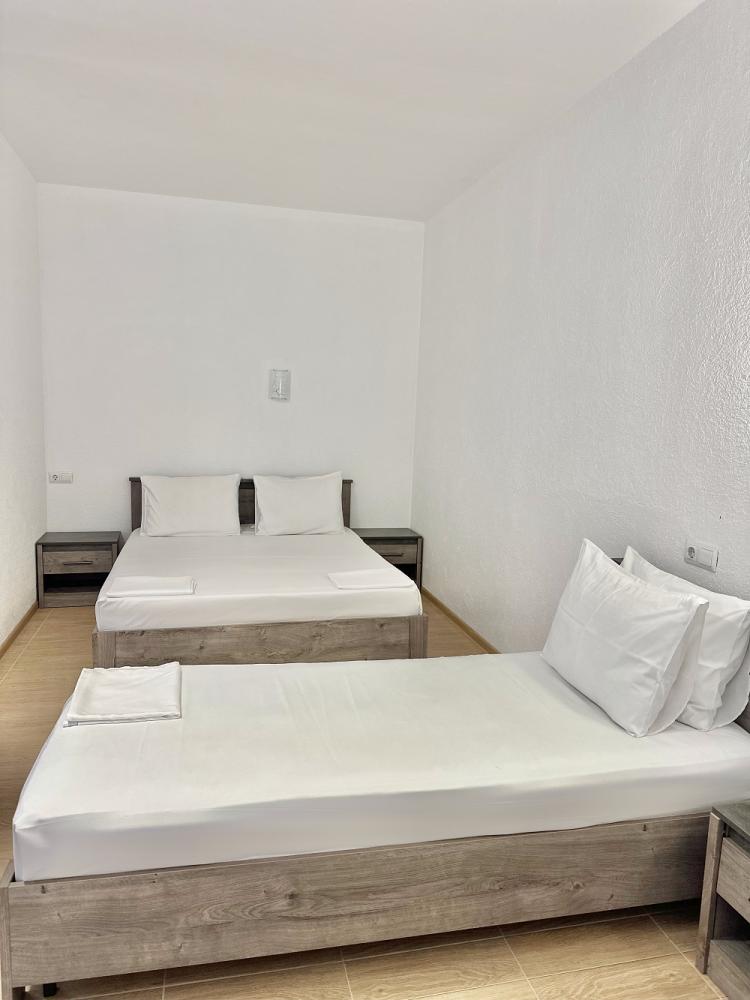 Комната стандарт с 1 односпальной и 1 двуспальной кроватью. В комнате: телевизор, кондиционер, санузел с душем. Гостям предоставляется постельное белье и полотенца.
