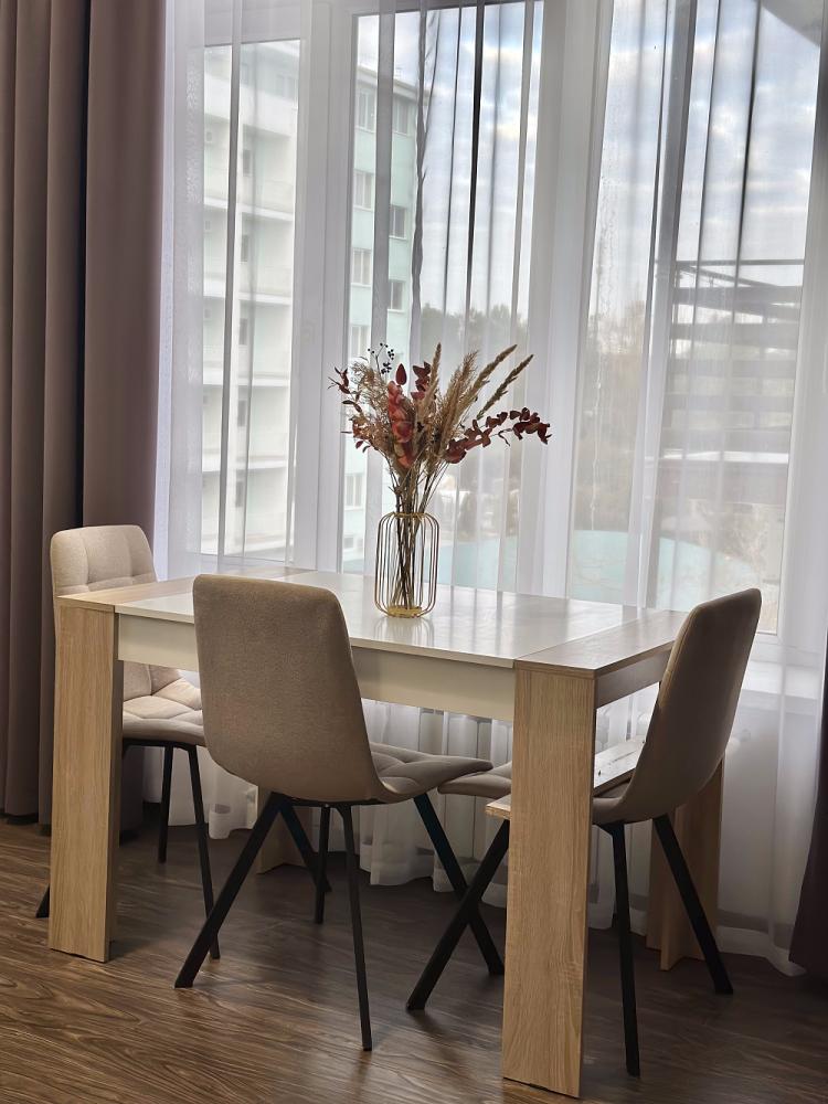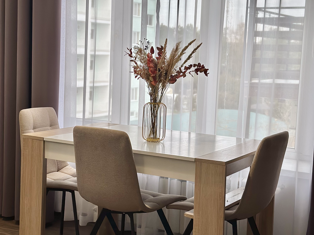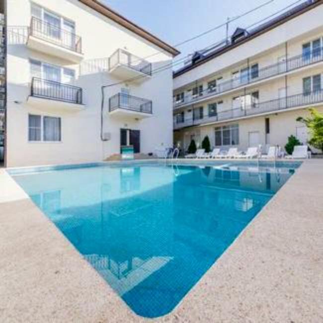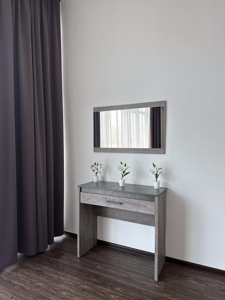 Просторная комната категории люкс, включает в себя спальню с двуспальной кроватью и гостиную с обеденной зоной и диваном. В комнате: телевизор, кондиционер, холодильник, санузел с душем и феном.