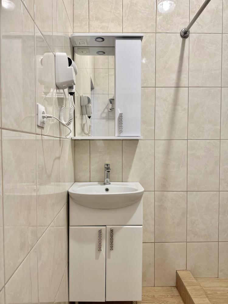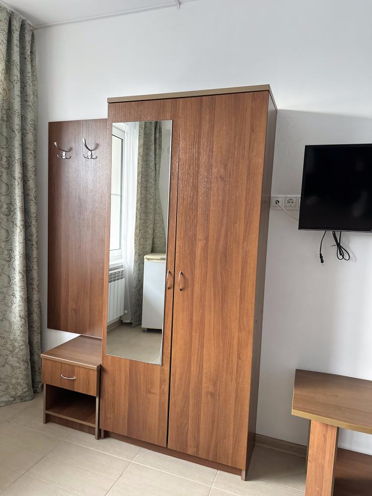 Уютная трехместная комната. В комнате: двуспальная и односпальная кровати, три односпальные или двуспальная кровать и диван, телевизор, кондиционер, санузел с душем. Гостям предоставляется постельное белье и полотенца.