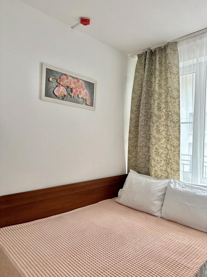 Комната комфорт с 1 двуспальной кроватью. В комнате: телевизор, кондиционер, санузел с душем. Гостям предоставляется постельное белье и полотенца.