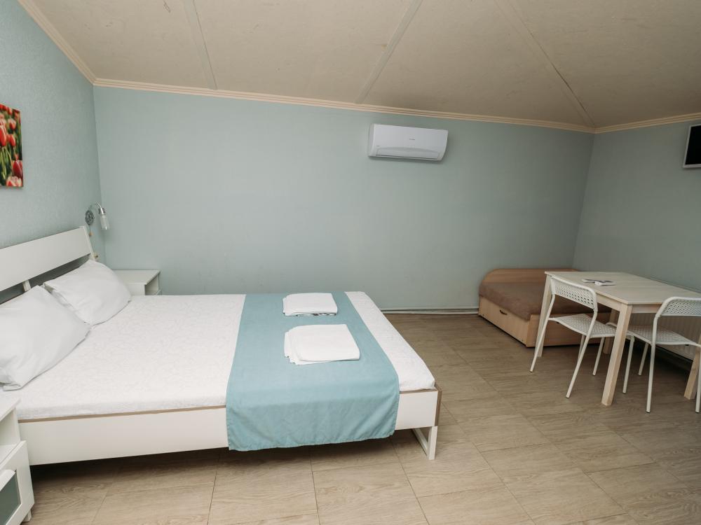 Уютная комната для 3 гостей, оборудованная всем необходимым для комфортного проживания. В комнате: двуспальная кровать, диван, мини-кухня и санузел с душем. Гостям предоставляется постельное белье и полотенца.