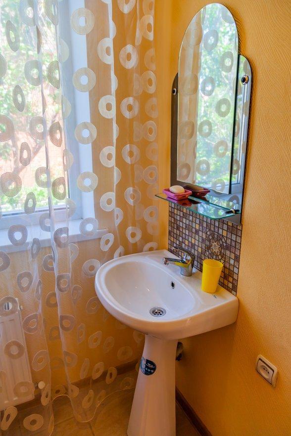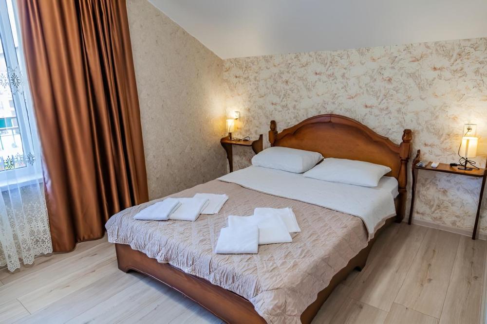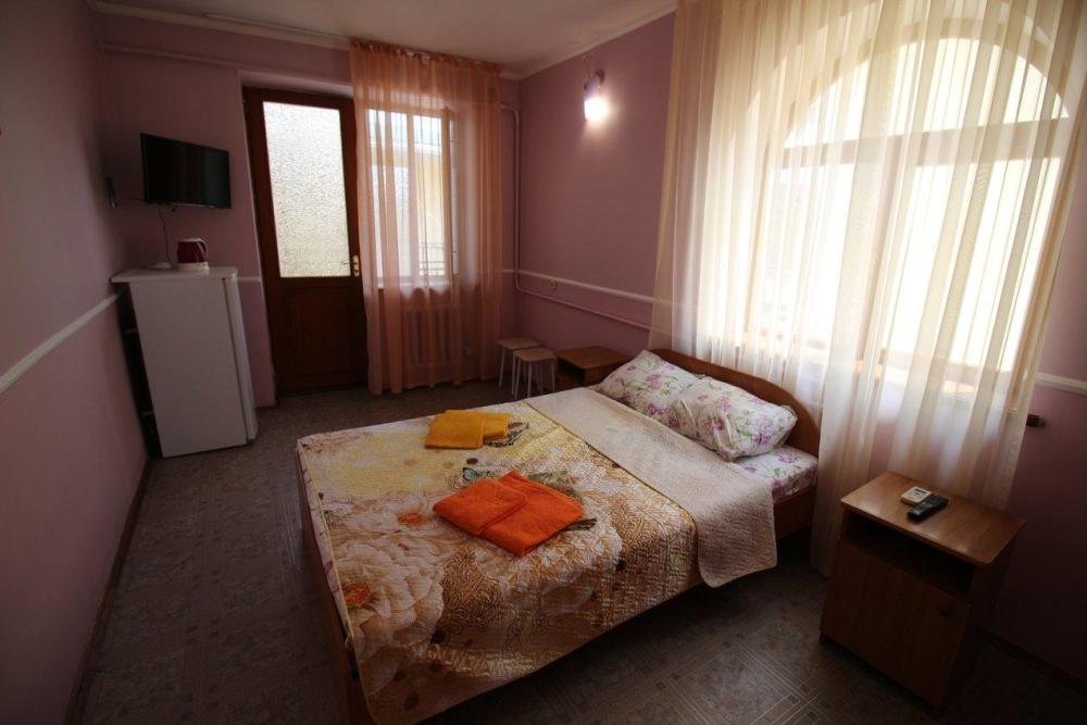 Комнат: 1, Этаж: 2, Площадь: 26 м². Кухня: общая оборудованная. Санузел: в номере. Мебель: двуспальная кровать, прикроватные тумбочки, шкаф, стол, стулья. Уютный балкон с видом на внутренний дворик. Дополнение: возможно установить доп. место платно.