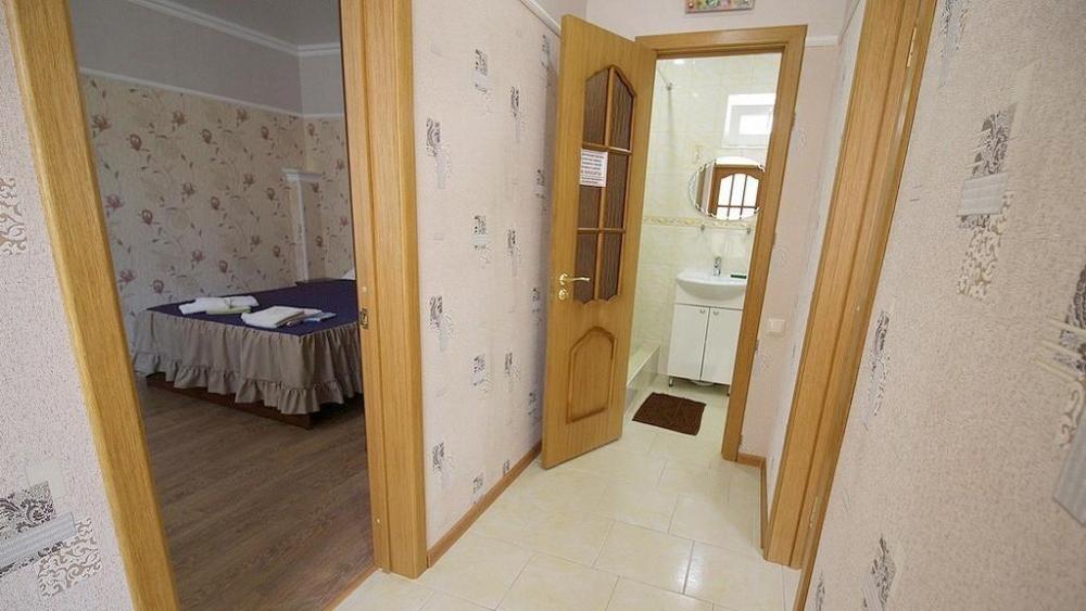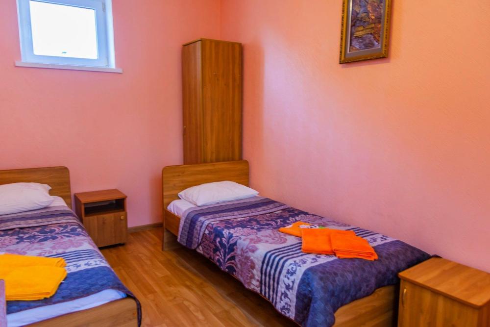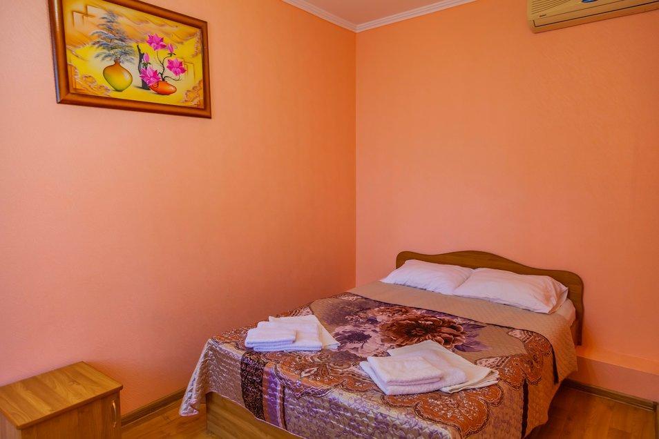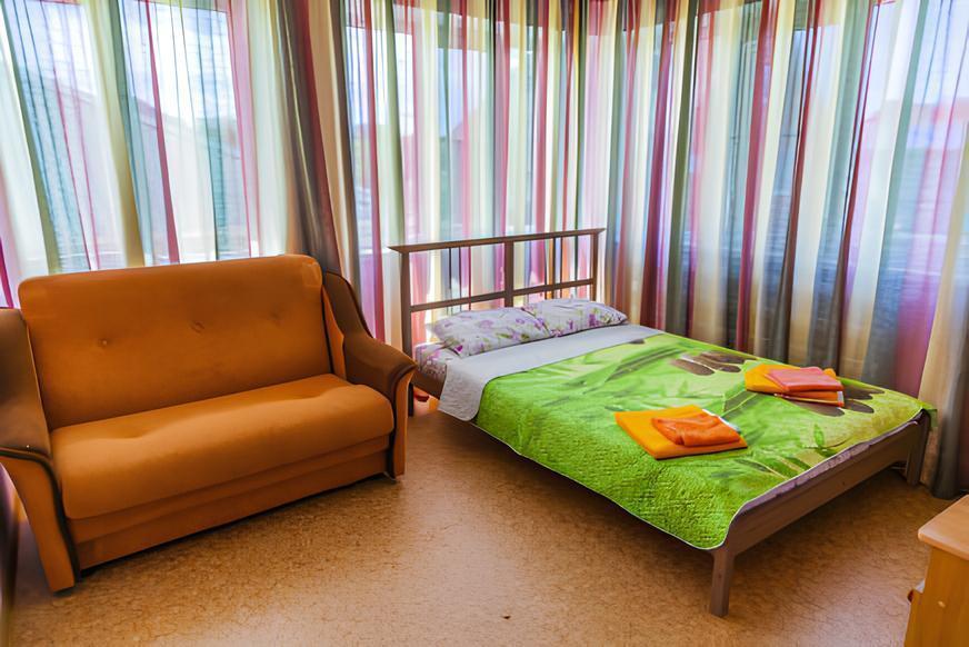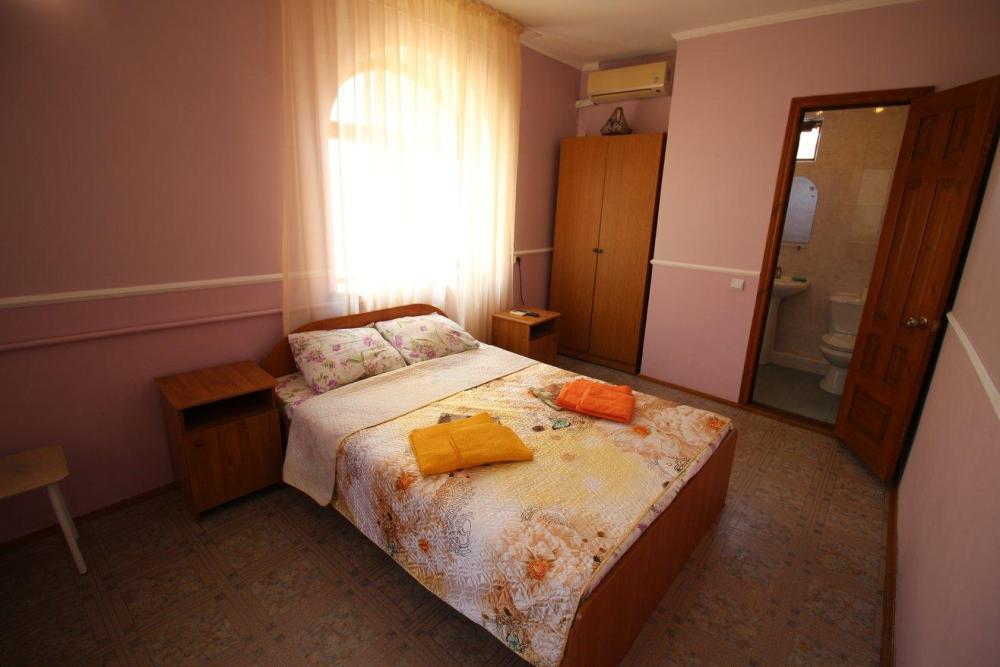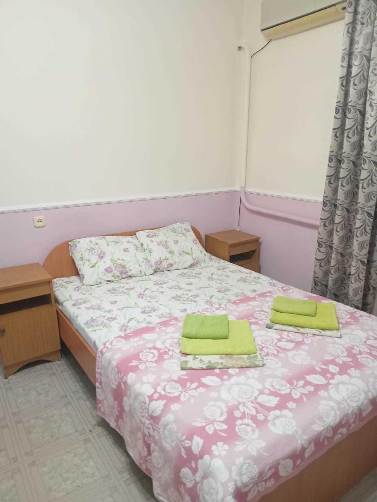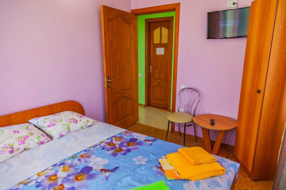 Комнат: 1, Этаж: 2. Кухня: общая оборудованная. Санузел: в номере. Мебель: двуспальные и односпальные кровати, кресло раскладное, тумбочки, шкаф, стулья. Описание: возможно установить доп. место платно.