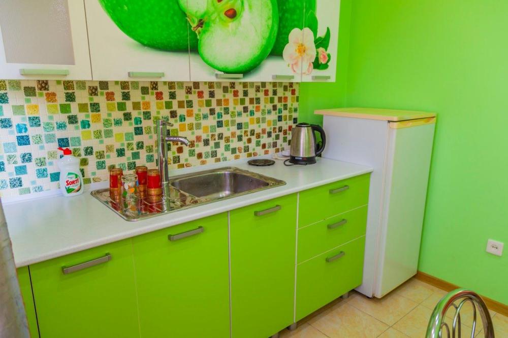 Комнат: 2, Этаж: 3. Кухня: оборудованная в номере (электрический чайник, холодильник, микроволновая печь, без варочной плиты). Санузел: в номере. Мебель: двуспальная ковать в одной комнате, диван-кровать, шкаф для одежды, прикроватные тумбочки.