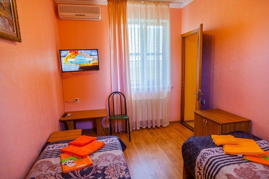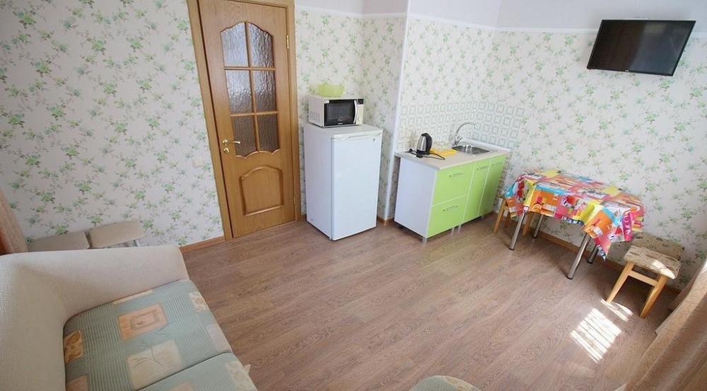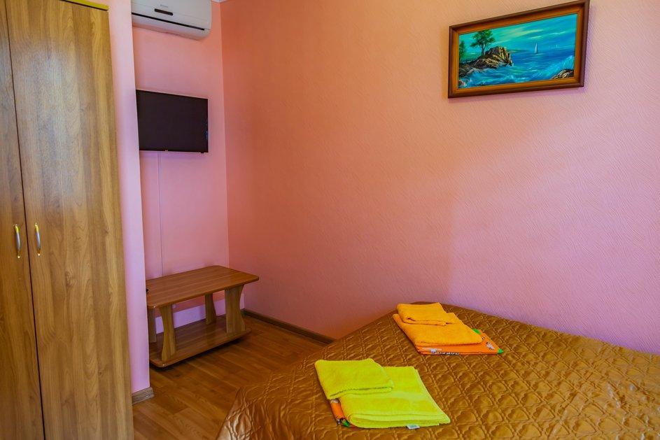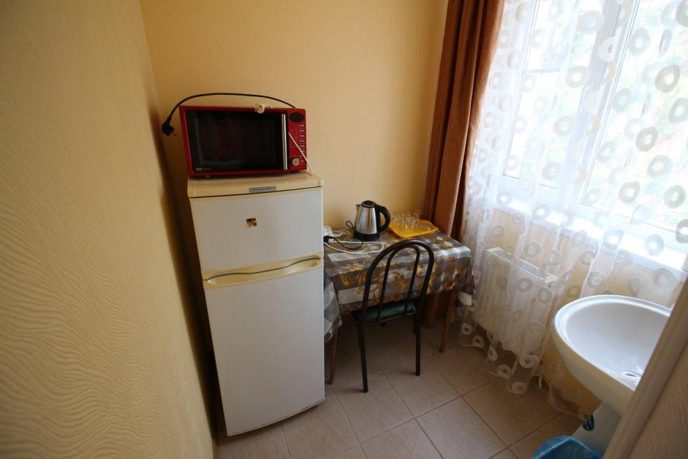 Комнат: 1, можно доп. место (кресло кровать). Кухня: общая оборудованная. Санузел: в номере. Мебель: двухспальная кровать или две односпальные кровати, прикроватные тумбочки, шкаф, столик.
